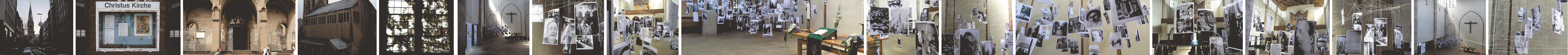 Christuskirche, Köln (2009) Jathosuche, Installation, Fotografie, Xerox, BIndfaden, Fixierung an vorgefundene Nägel, Schrauben, Ösen, flexible Größe.