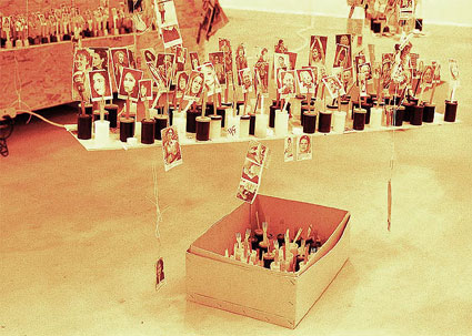 Some kind of Memorial. Details of Artwork/Installation at Sharjah Art Museum, Sharjah/United Arabic Emirates. Installations on 40 qm, Cuttings from Newspapers, various Materials. Dokumentary Photography, 30 x 40 cm (Fritze 2003) Back