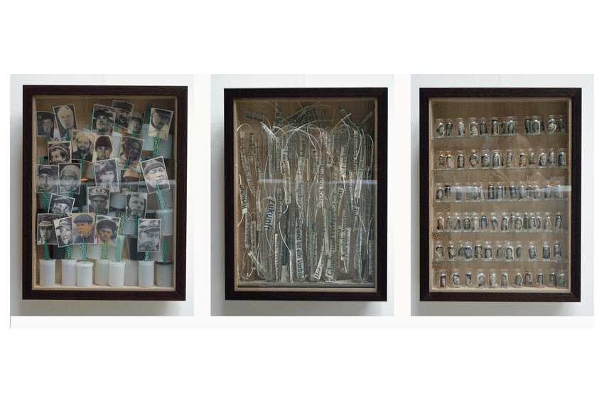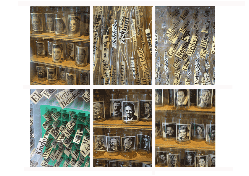 Modell-Boxes containing various recombined materials from paper sections (Fritze, 2008)