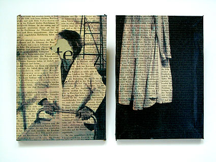 Forschung und Fortschritt (Research and Progress). Digital Photography, Water colour Prints on Pages of Scientific Journals. Various serial works (Example).Size of single objekts 13 x 18 x 1 cm.