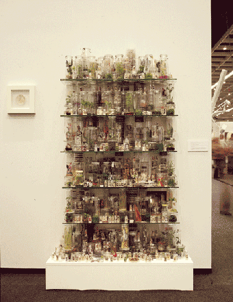 Rita, Stan and Katarina. Detail from Artwork/Installation presented at Art Cologne 2005 with Galerie Brigitte Schenk, Cologne. Entire Size 140 x 40 x 200 cm, In vitro Plants and various Materials (Fritze, 2005)