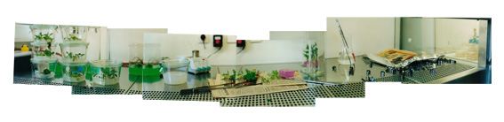 Christusdorn: Pflanzglas Präparation, Fotomontage ca 100 x 18 cm (2004)