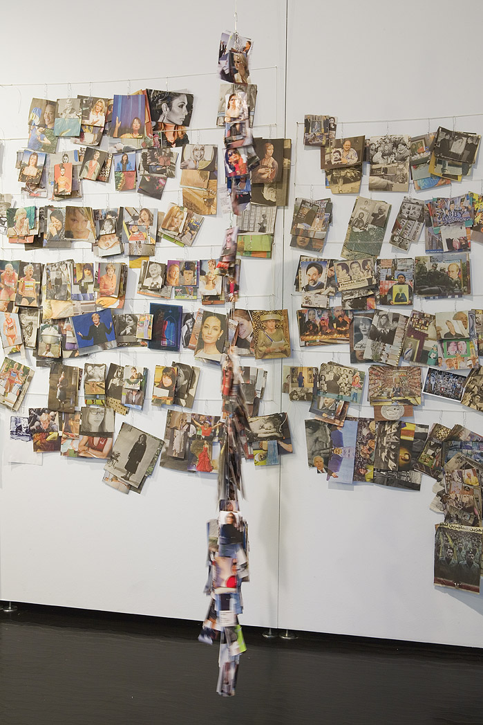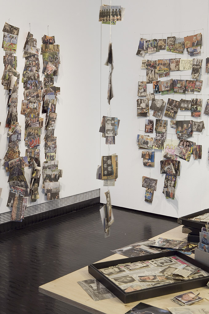Wand mit sortierten Zeitungsauschnitten, kategorisierte Mehrspalter. Foto: Tamara Lorenz für KF (2010)