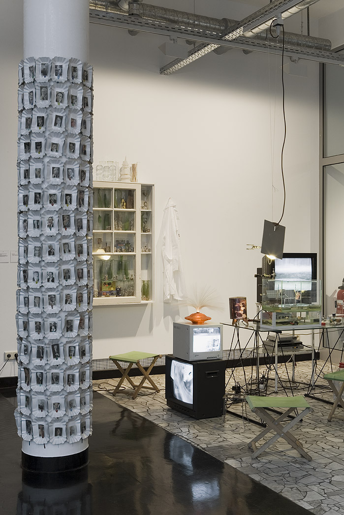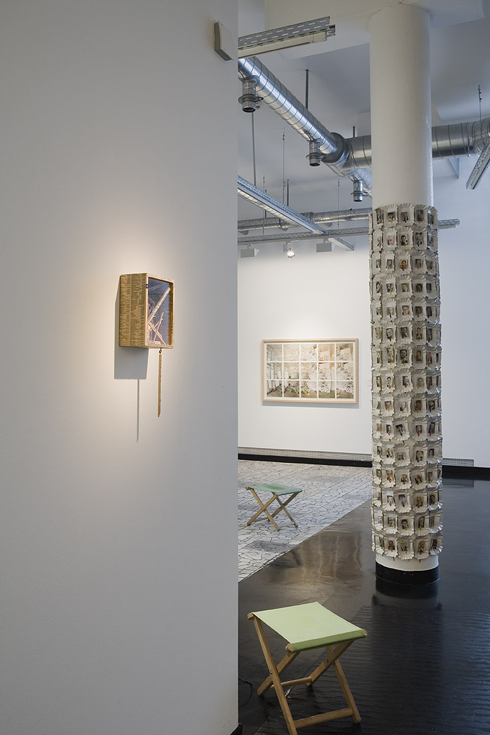 Umwickelte Säule, Objektvitrine, Klapphocker, Fotokollage Gartenraum. Foto: Tamara Lorenz für KF (2010)