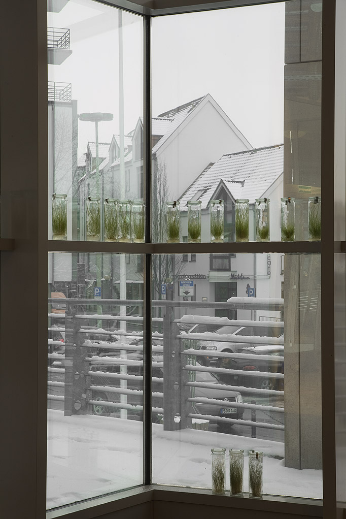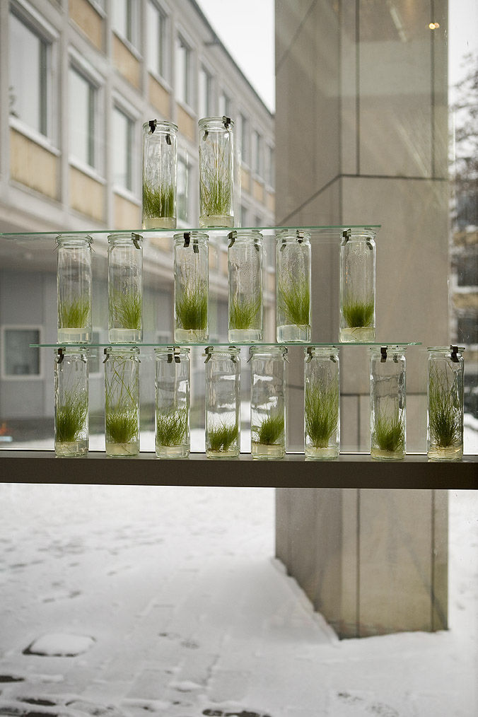 In vitro Wiese, verschiedene Graskulturen in Einweckgläsern. Foto: Tamara Lorenz für KF (2010)
