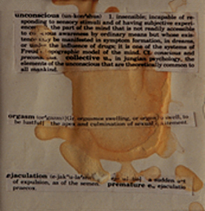 oooooooKosit's spermatozoa on collage texts. Photograh taken by Navin Rawanchaikul.