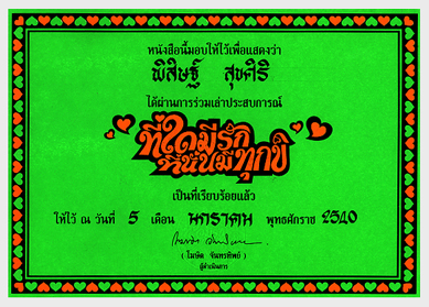 Where there is love, There is suffering Detail of documentation. Love discussion certificate.