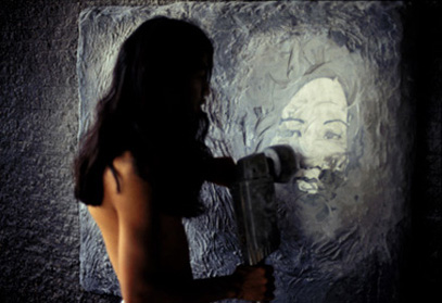 SCULPTURE OF FATHER AND MOTHER (Detail) Kosit Juntaratip as a sculptor was working with carving machine.