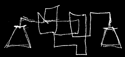 Auf dem Achterdeck ist eine Standfläche markiert. Eine Haube aus Graukarton öffnet sich in Kopfhöhe über der markierten Fläche. Die Haube, ein Pyramidenstumpf, ist mit einer Pappröhre verbunden. Die Röhre führt ins Innere des Schiffs. Gebogene Verbindungsstücke aus Aluminium lenken die Röhre. Sie verläuft quer durch das Deck, durch die Kabinen und entlang der Kombüse nach unten. Dort wird der Maschinenraum durchquert. Die Röhre führt weiter durch den Speisesaal auf die Brücke. Auf dem Vorderdeck endet die Röhre mit einer zweiten nach unten geöffneten Haube über einer markierten Standfläche.