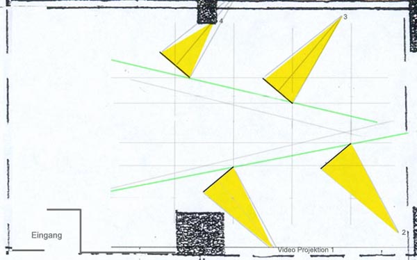Plan for ArtCologne, 4 x Transparent screens(100x134 cm), 4 x DVD Player,