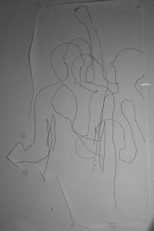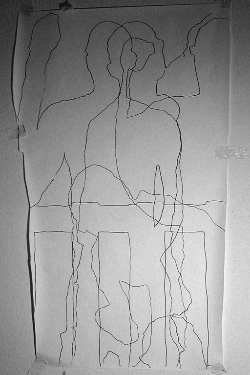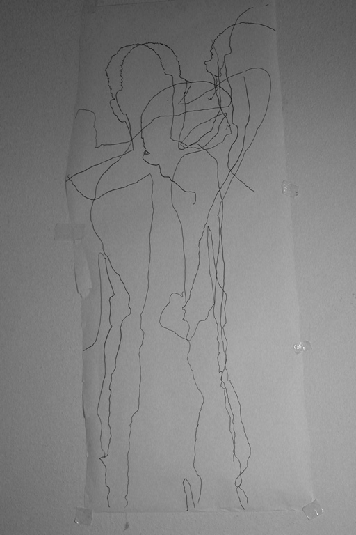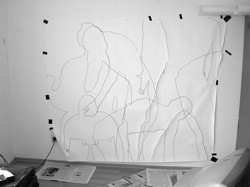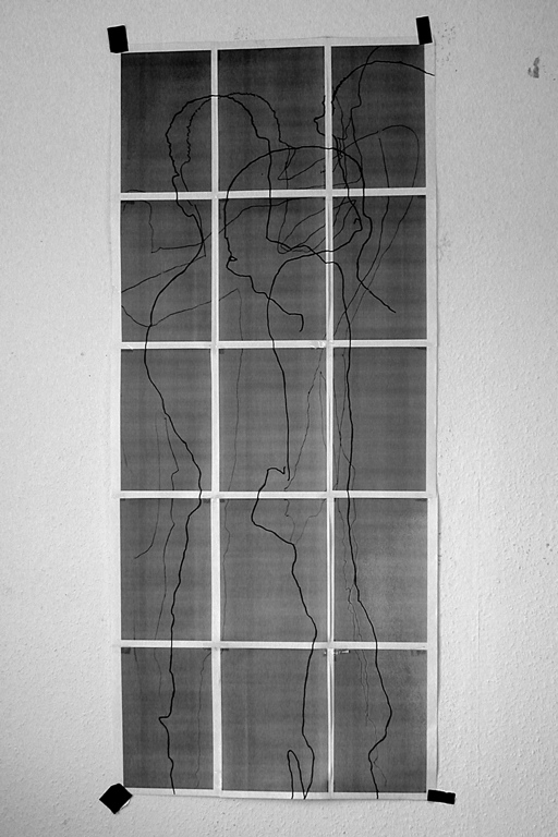 2008. various drawings of body shadow/outline on paper/cosmetic mirrors.