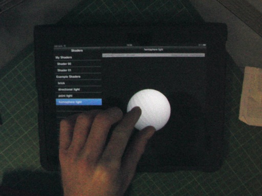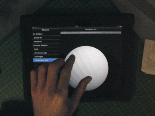 The application is implemented for the Apple iPad using Objective-C with OpenGL ES 2.1 and GLSL 1.0.