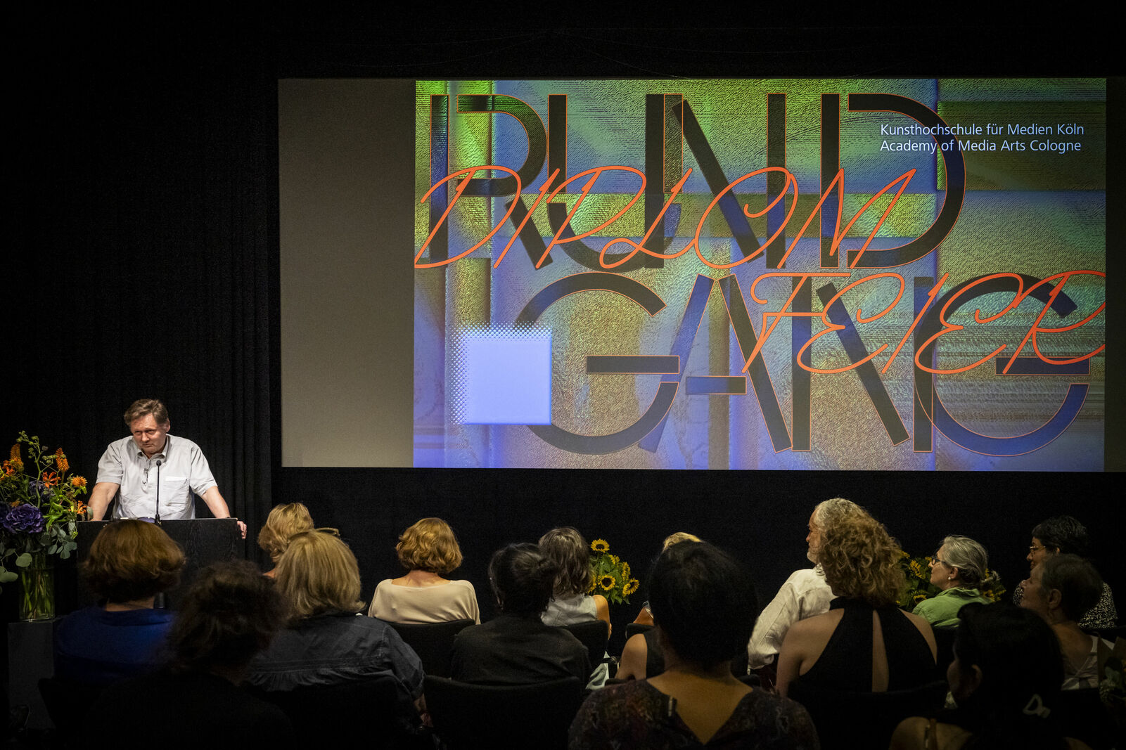 Die KHM feiert ihr 35-jähriges Bestehen mit einem Festprogramm zum diesjährigen Rundgang. Nach der Begrüßung durch Rektor Prof. Mathias Antlfinger, Prorektorin Solveig Klaßen und Kölns Bürgermeister Andreas Wolter wird der Medien- und Kulturphilosoph Prof. Dr. Roberto Simanowski die Festrede halten. Sein Thema: „Algorithmic Reparation. Wie Sprachmodelle die Welt verbessern wollen und was sie dabei von der Kunst lernen können.“ Anschließend verleiht Isabel Apiarius-Hanstein, Vorstandsvorsitzende der Freunde der KHM e.V., den Großen Kunstpreis.
