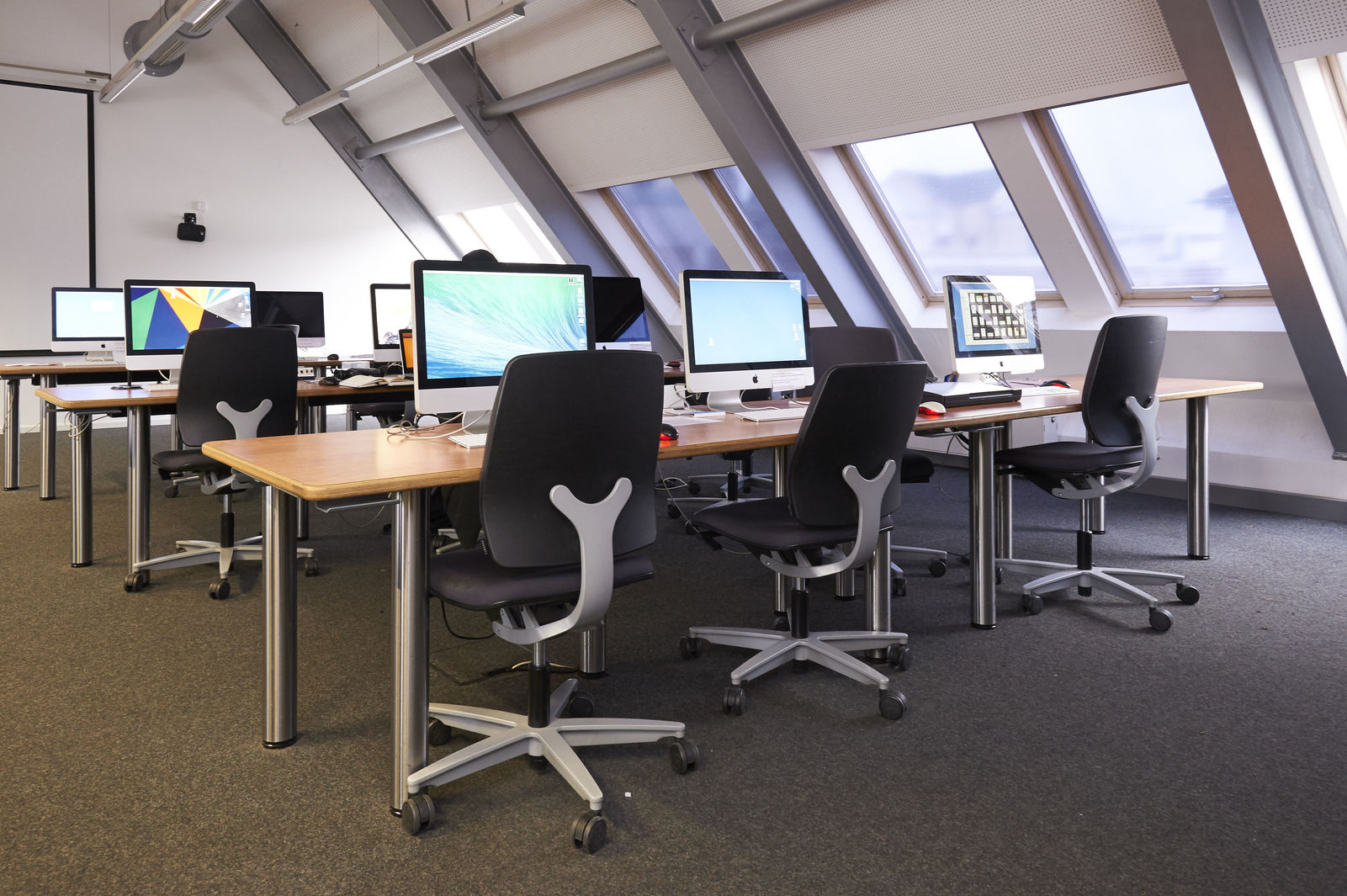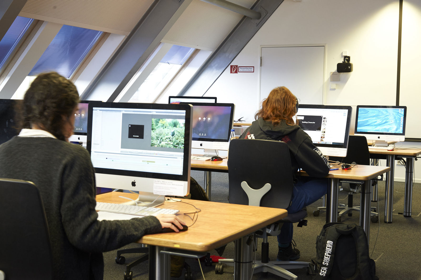 Der Computerseminarraum dient als multifunktionaler Arbeitsraum, der einerseits für Seminare mit hands-on Charakter als auch für Fortbildungen der Mitarbeiter genutzt wird, andererseits in der sonstigen Zeit rund um die Uhr den Studierenden für ihre computerbezogene Arbeit zur Verfügung steht. Hier können neben Büroaufgaben auch Online-Recherche, Programmierung, einfacher Videoschnitt, Bildbearbeitung und sonstige Computerarbeiten vorgenommen werden. Unterstützt wird dies durch einen multifunktionalen Drucker/Kopierer/Scanner. Im Raum gibt es natürlich auch einen Beamer und eine kleine Tonanlage.