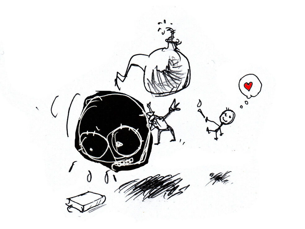 Für alle, die bis hierhin durchgehalten haben: Das war nicht die ganze Wahrheit. Die oft übersehenen Vorteile beim Drehbuchschreiben: Man sieht bei der Arbeit tagelang keine Menschen, darf Kaffee trinken soviel man will und kann nach Herzenslust seine Hauptfigur quälen ohne dafür in den Knast zu wandern. Und das mit dem Beutelteufel ist natürlich gelogen.