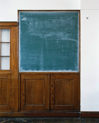 "Der Titel der Ausstellung 'Philipp Goldbach Tafelbilder' spielt mit der Doppelsinnigkeit: Ist die in der Lehre mit dem Tafelbild gleichgesetzte Tafelanschrift gemeint? Oder handelt es sich um Gemälde, die, in Bezug auf ihren materiellen Träger in der bildenden Kunst auch als Tafelbilder umschrieben werden? (...) Gezeigt werden Fotografien vorgefundener Zustände von Kreidetafeln an Universitäten und Forschungsinstituten in Deutschland, an denen in der Vergangenheit einflussreiche Denker gelehrt und geschrieben haben. (...) In der Ausstellung erweitern den räumlichen und personalen Kontext von Goldbachs Tafelbildern historische Aufnahmen wie dienjenige, die einen Professor an der Akademie der Bildenden Künste München vor einer überlebensgroß in Kreide auf die Tafel gezeichnete Architektur überliefert, oder die Fotografie von Barbara Klemm, in der die Philosophen der Frankfurter Schule – Theodor W. Adorno und Max Horkheimer – auch mal nicht wissenschaftliche Appelle per Tafelanschrift an die Studierenden richteten." (Quelle: Ausstellungsflyer/Museum für Kunst und Kulturgeschichte der Philipps-Universität Marburg/Ernst-von-Hülsen-Haus).