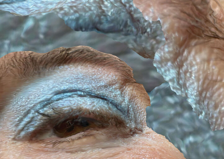 Die Künstlerin untersucht in einer mehrteiligen Bilderserie die zunehmende Selbstüberwachung und den damit einhergehenden forensischen Blick. Sie hinterfragt diese mikroskopische Prüfung unseres eigenen Aussehens und erforscht das Konzept von Haut, Selbstpflege, Schönheitsprodukten und -praktiken.