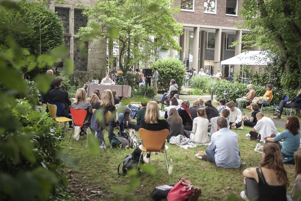 Lesung der KURZE #02, Rundgang Juli 2019, Garten Bibliothek/Mediathek der KHM im Overstolzenhaus