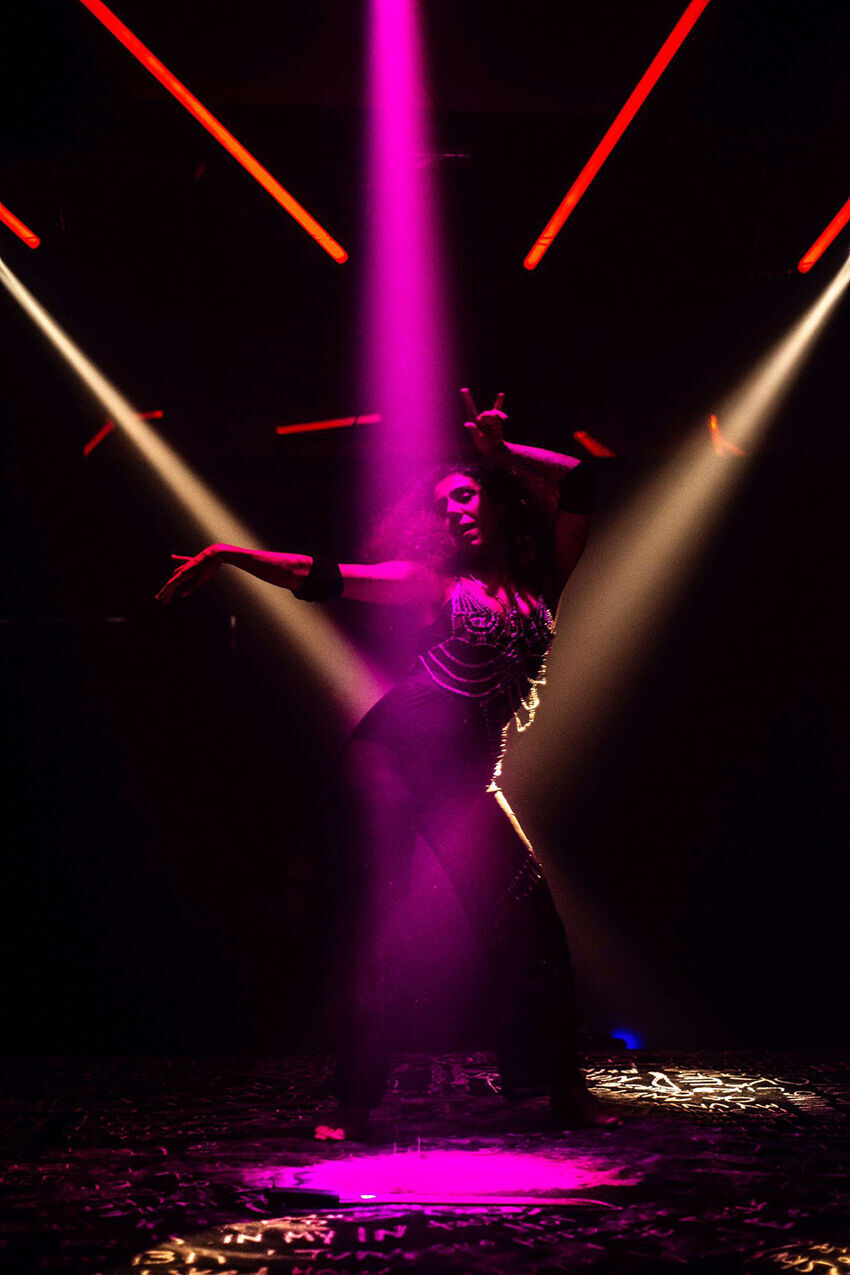 Erzählt wird die Geschichte eines wiederkehrenden Tagtraums, der Farbe Rot und einer erfundenen Unterhaltung voller Halbsätze und Missverständnisse – perfekt wie ein Witz. Begleitet von einer sich wiederholenden, dynamischintensiven Melodie erlebt das Publikum gemeinsam mit der Performerin extreme Emotionen – Freude und Trauma, Schmerz und Vergnügen –, wodurch verborgene und unausgesprochene Gefühle und Wünsche ausgelöst werden. Hend Elbalouty untersucht in ihrer Performance die Beziehung zwischen Kunst und sozialer Klasse. Sie bedient sich der Sprache von ägyptischem Tanz und der Straßenmusik Mahraganat, um „in meinem Körper ein Zuhause zu finden“. Die Performance ist auch eine sehr persönliche Erzählung über das Dasein als Außenseiter*in.