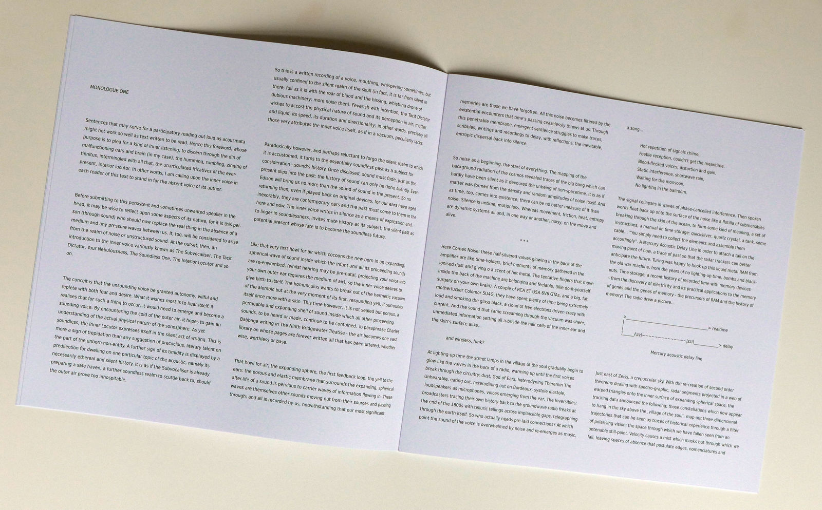 “The speed of sound is a good rate at which to think about a speed of time” These and related topics are expanded over the following pages. They contain the sources for all readings recorded and subsequently transformed in the ORE TALKS experiments on this double LP.