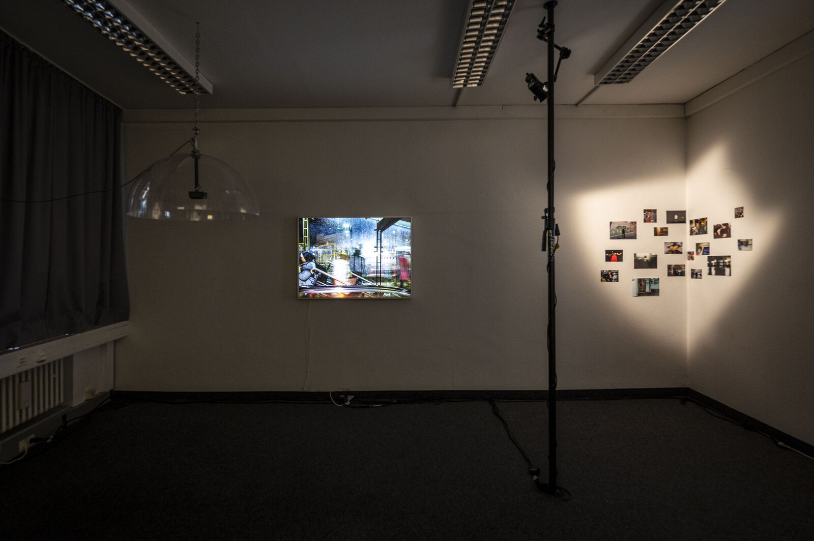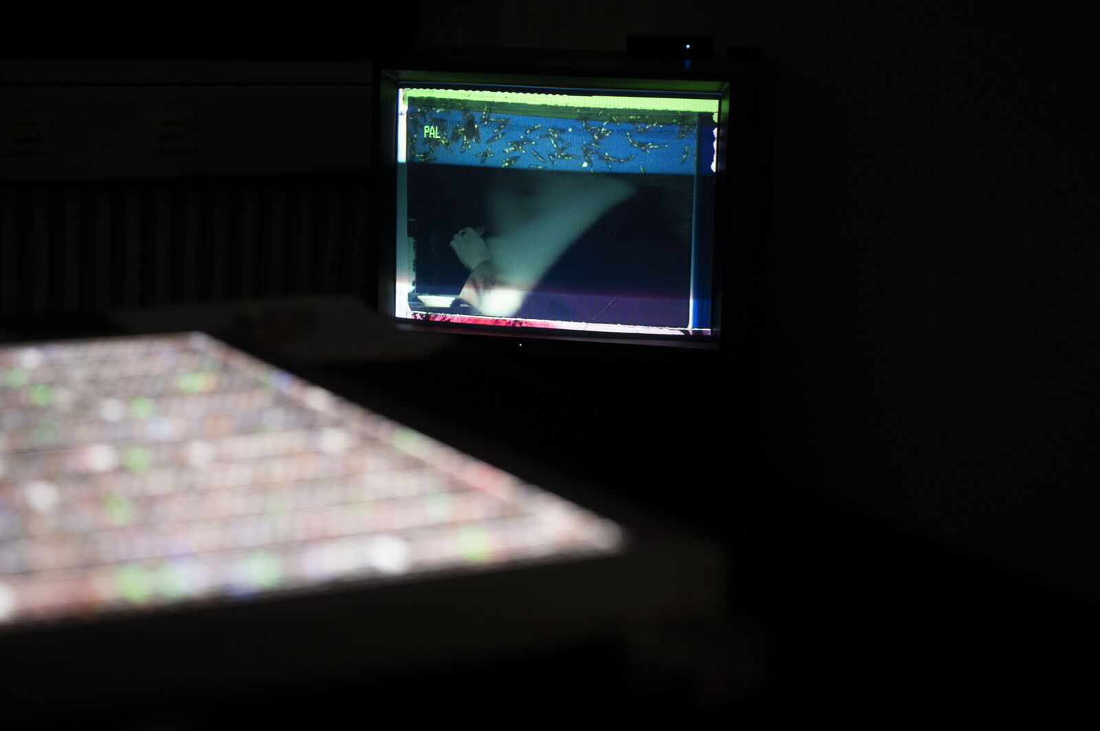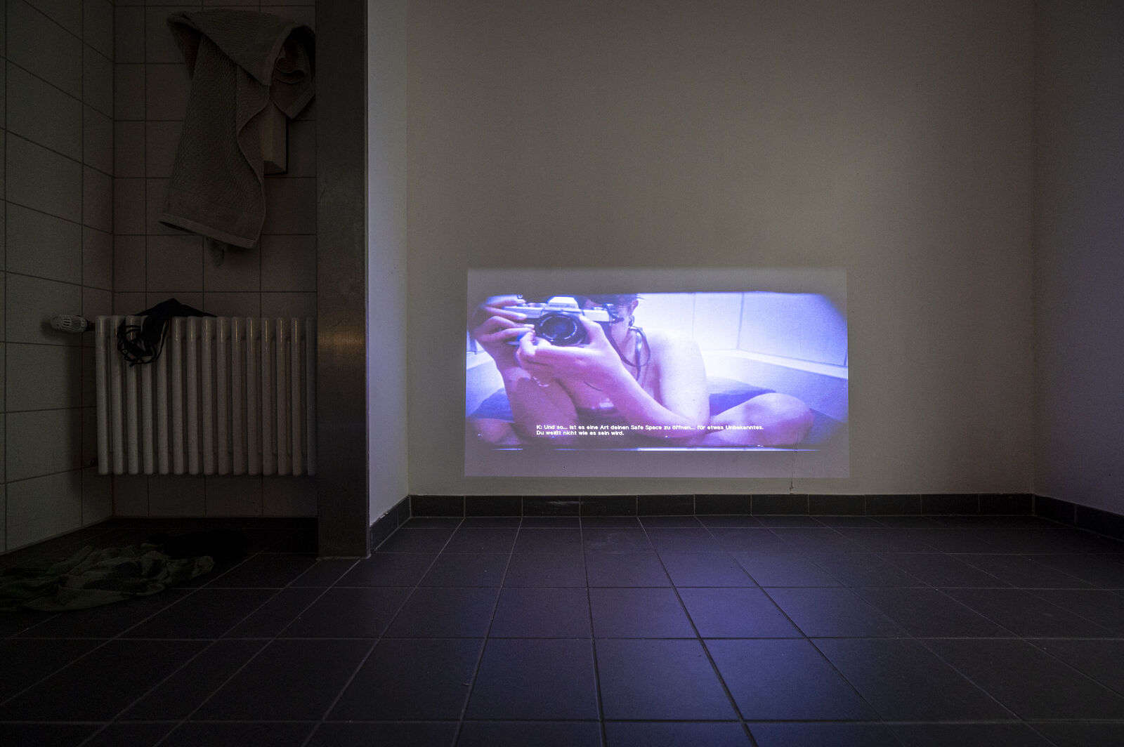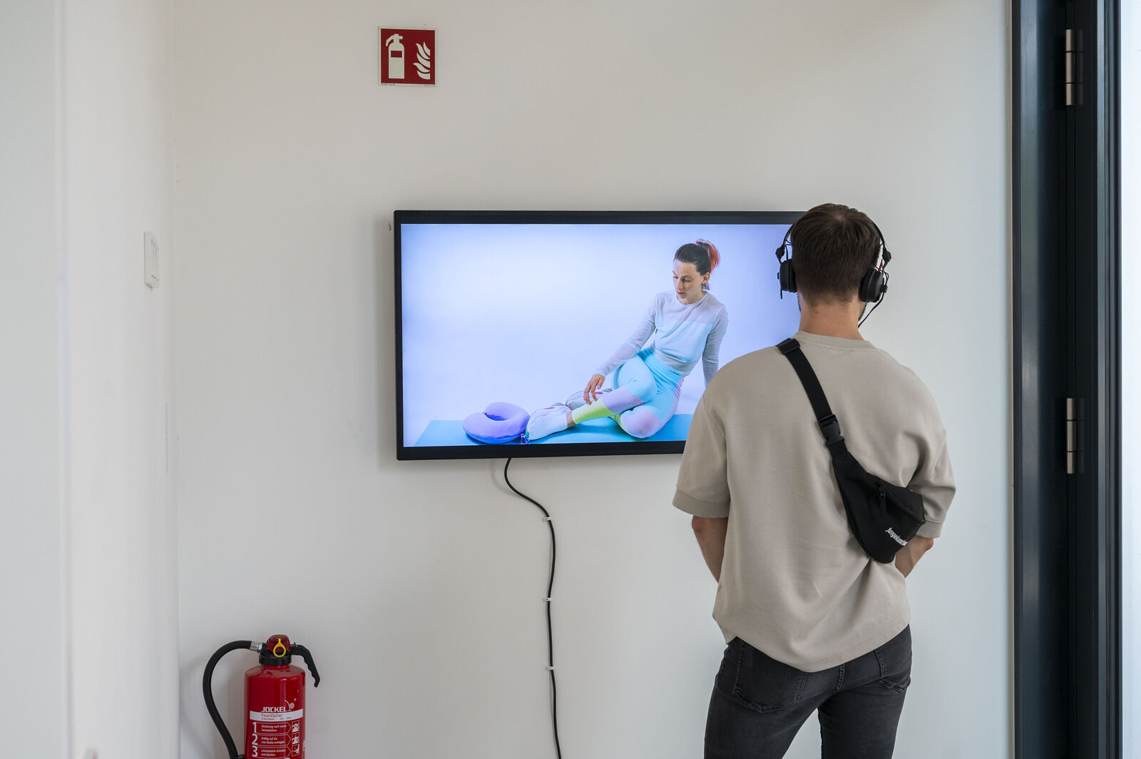 ![]() Screeningraum mit Filmen von Manuela Puerta, John Bergerhausen, Ausstattungsdetails: Manuela Puerta |