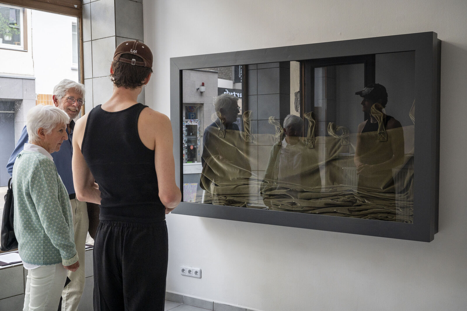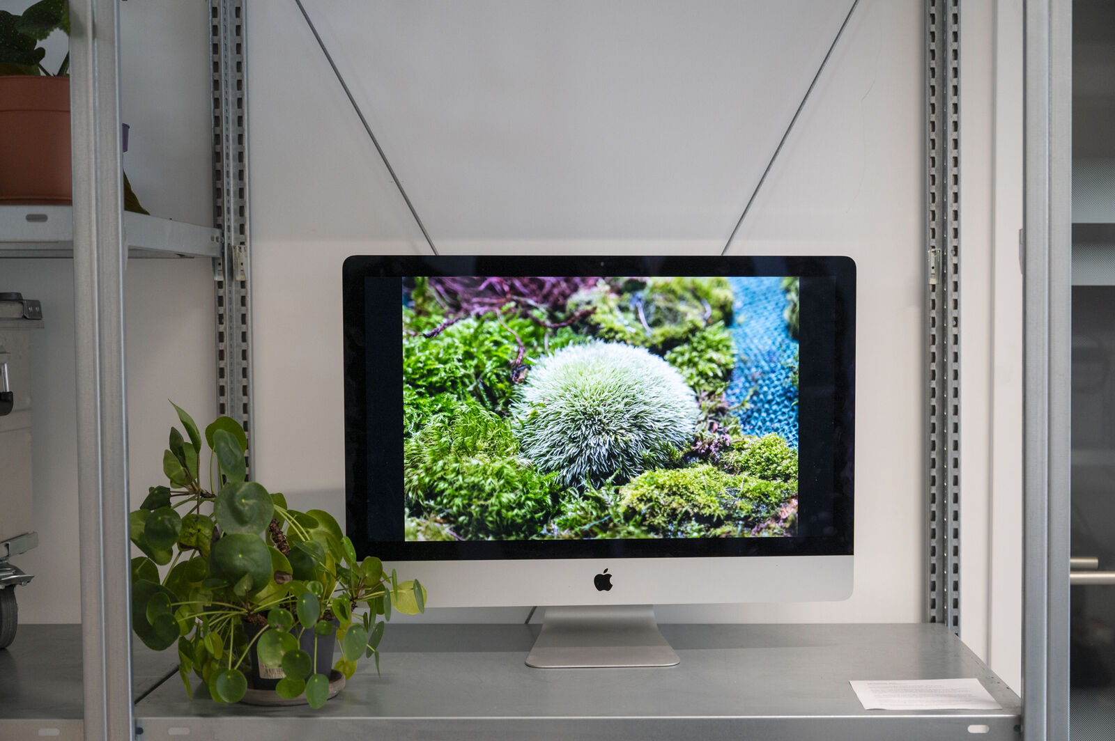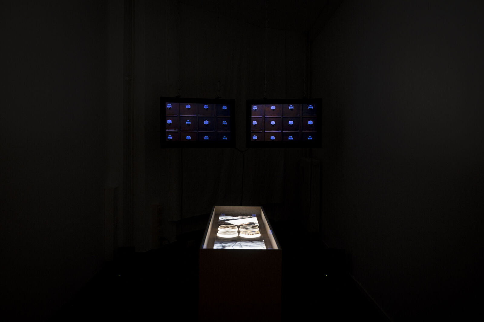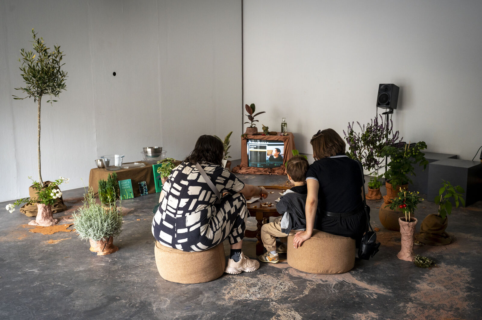 ![]() Screeningraum mit Filmen von Manuela Puerta, John Bergerhausen, Ausstattungsdetails: Manuela Puerta |