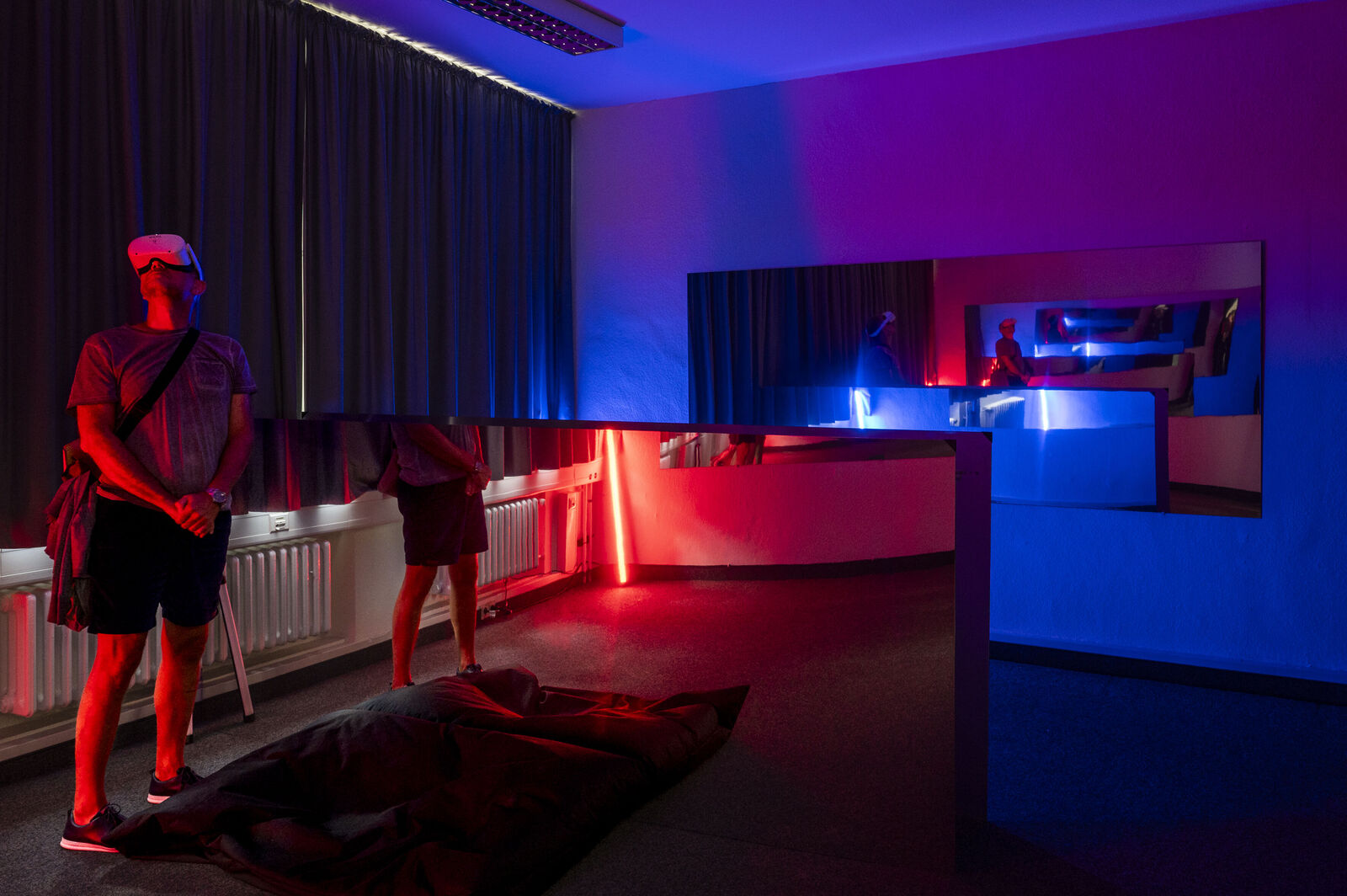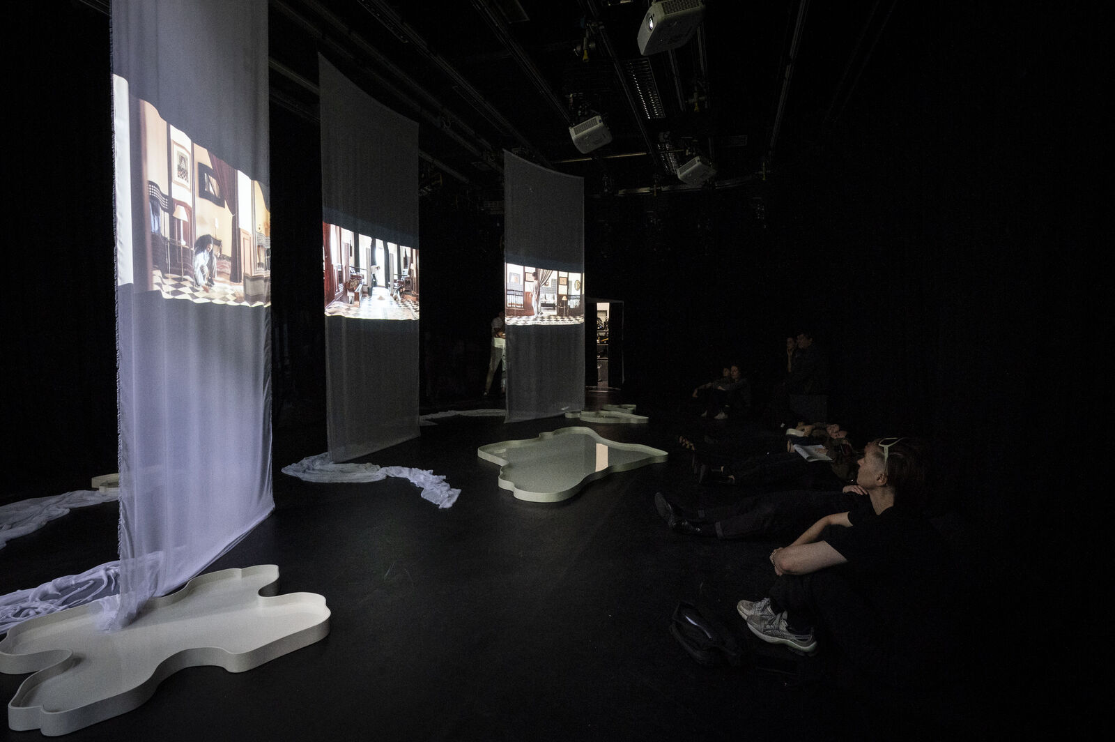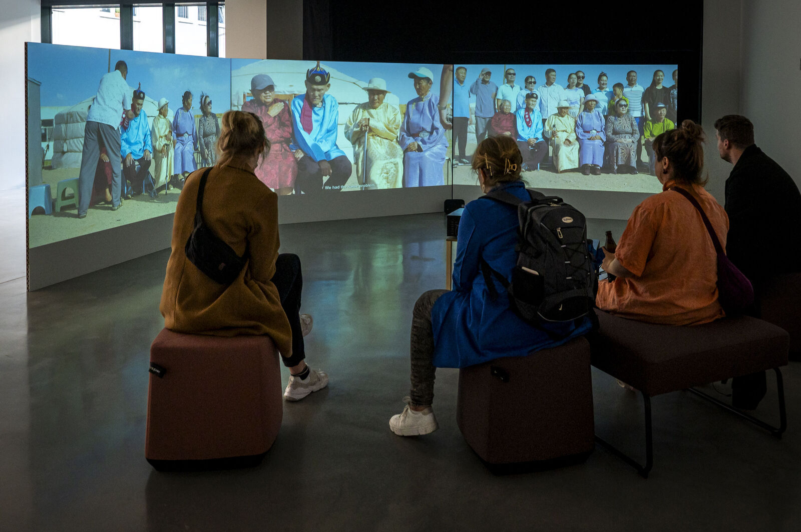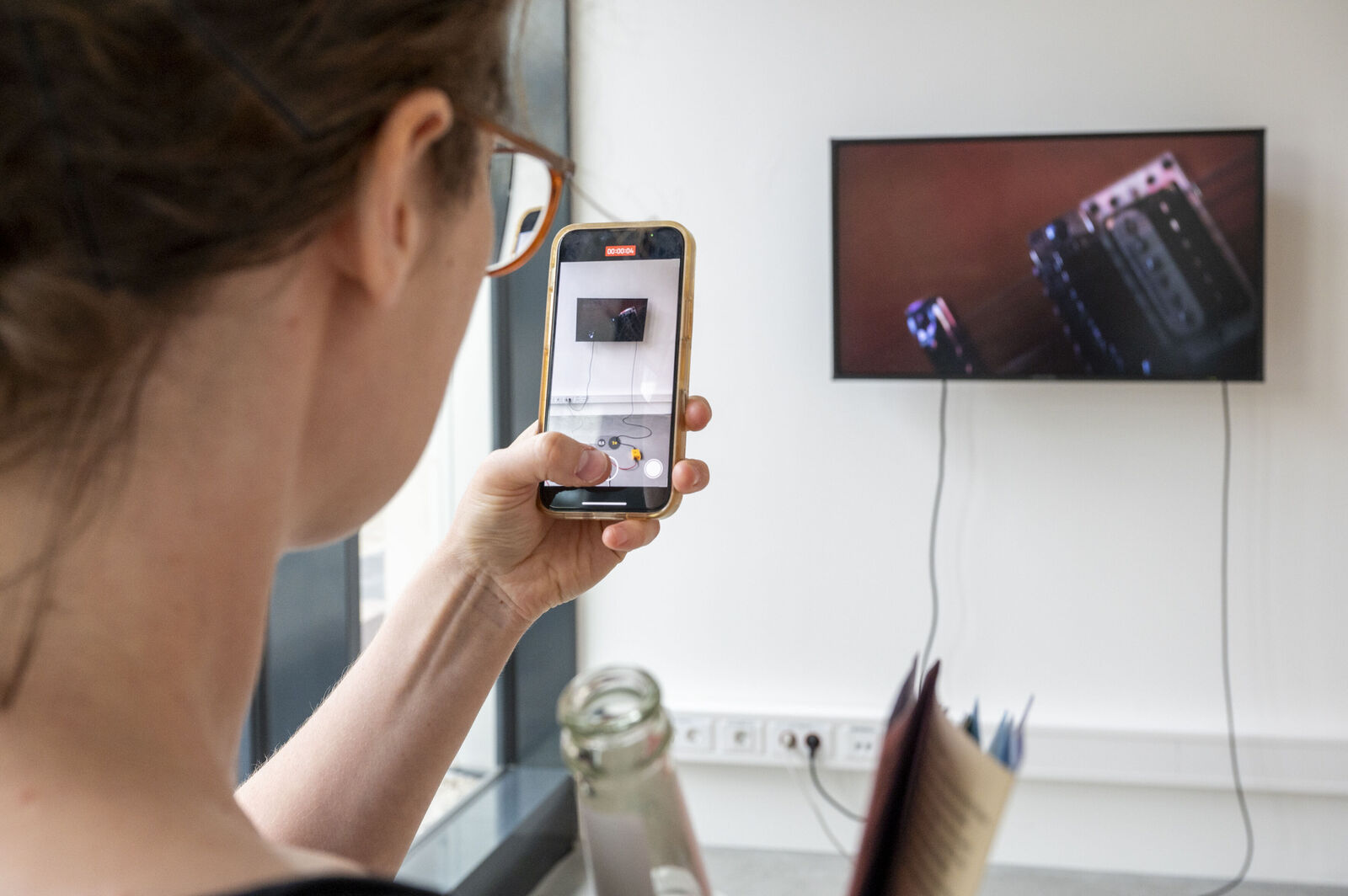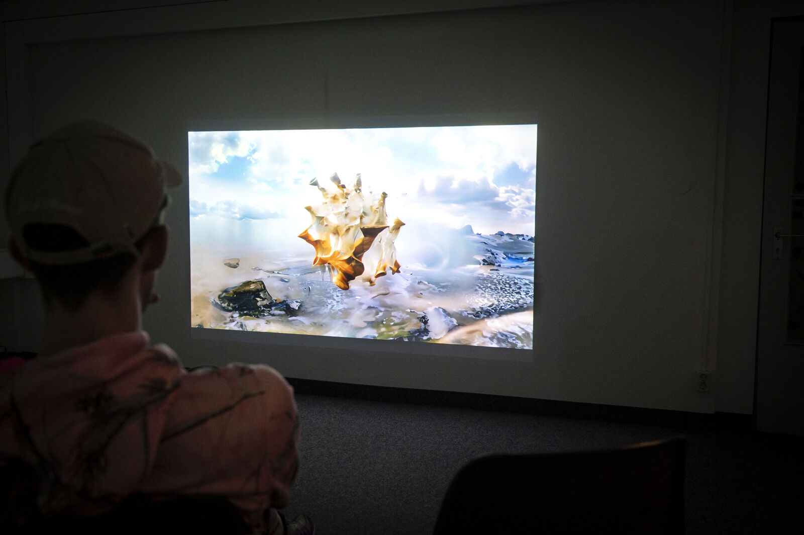 ![]() Screeningraum mit Filmen von Manuela Puerta, John Bergerhausen, Ausstattungsdetails: Manuela Puerta |