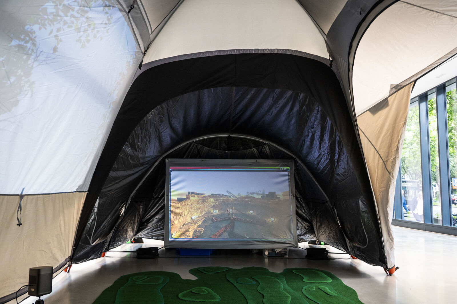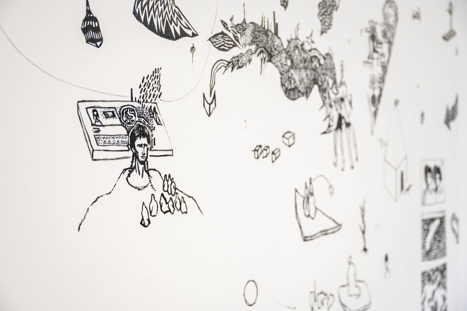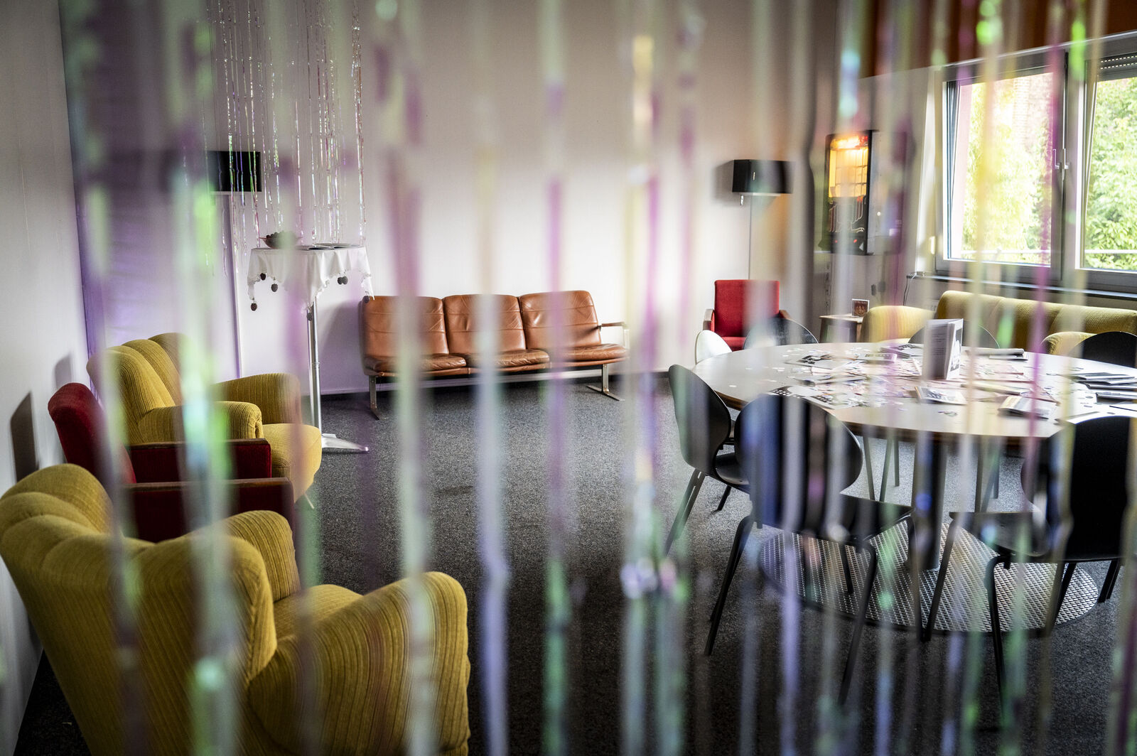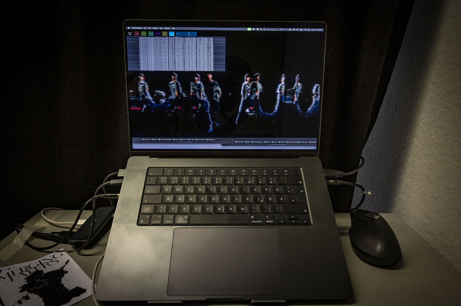 ![]() Screeningraum mit Filmen von Manuela Puerta, John Bergerhausen, Ausstattungsdetails: Manuela Puerta |