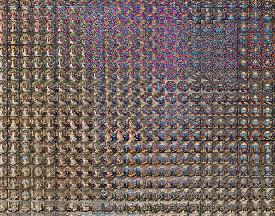 Die Arbeit ist Teil eines Archivs, das sich mit Zwischenschritten und Glitches innerhalb der Entwicklung von generativer KI beschäftigt.