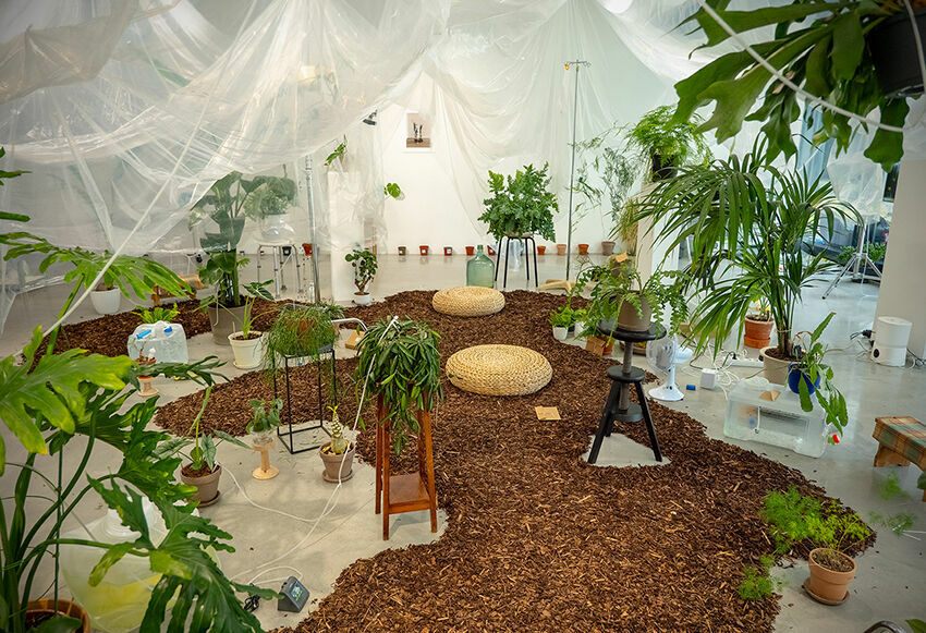 In ihrer Installation untersucht Soojin Ok die Beziehung zwischen Mensch und Pflanze im urbanen Raum. Sie verbindet ein raumgreifendes Pflanzensystem mit digitalen Zeichnungen, Texten, Bildern und Videos, die auf den Rhythmus des pflanzlichen Lebens reagieren. Gezeigt wird, wie tropische Pflanzen heute in technisierten Innenräumen unter künstlichen Bedingungen wie LED-Licht, automatischer Bewässerung und Luftzirkulation gepflegt werden. Diese Pflege gilt oft als Zeichen von Zuneigung, ist aber Teil eines komplexen technischen Systems, das ständige Eingriffe erfordert. Dabei ist die Beziehung längst nicht mehr einseitig: Der Mensch kontrolliert nicht nur, sondern wird auch vom Rhythmus der Pflanzen beeinflusst. Die Arbeit fungiert als visuelles Protokoll dieser stillen Wechselwirkung und regt zur Reflexion über Kontrolle, Fürsorge und die subtile Kraft pflanzlichen Lebens an.
