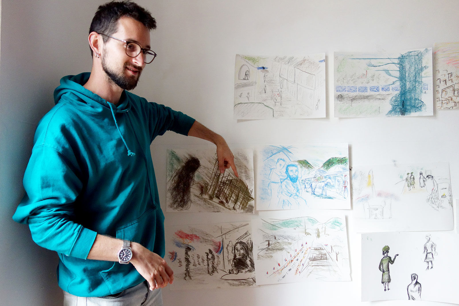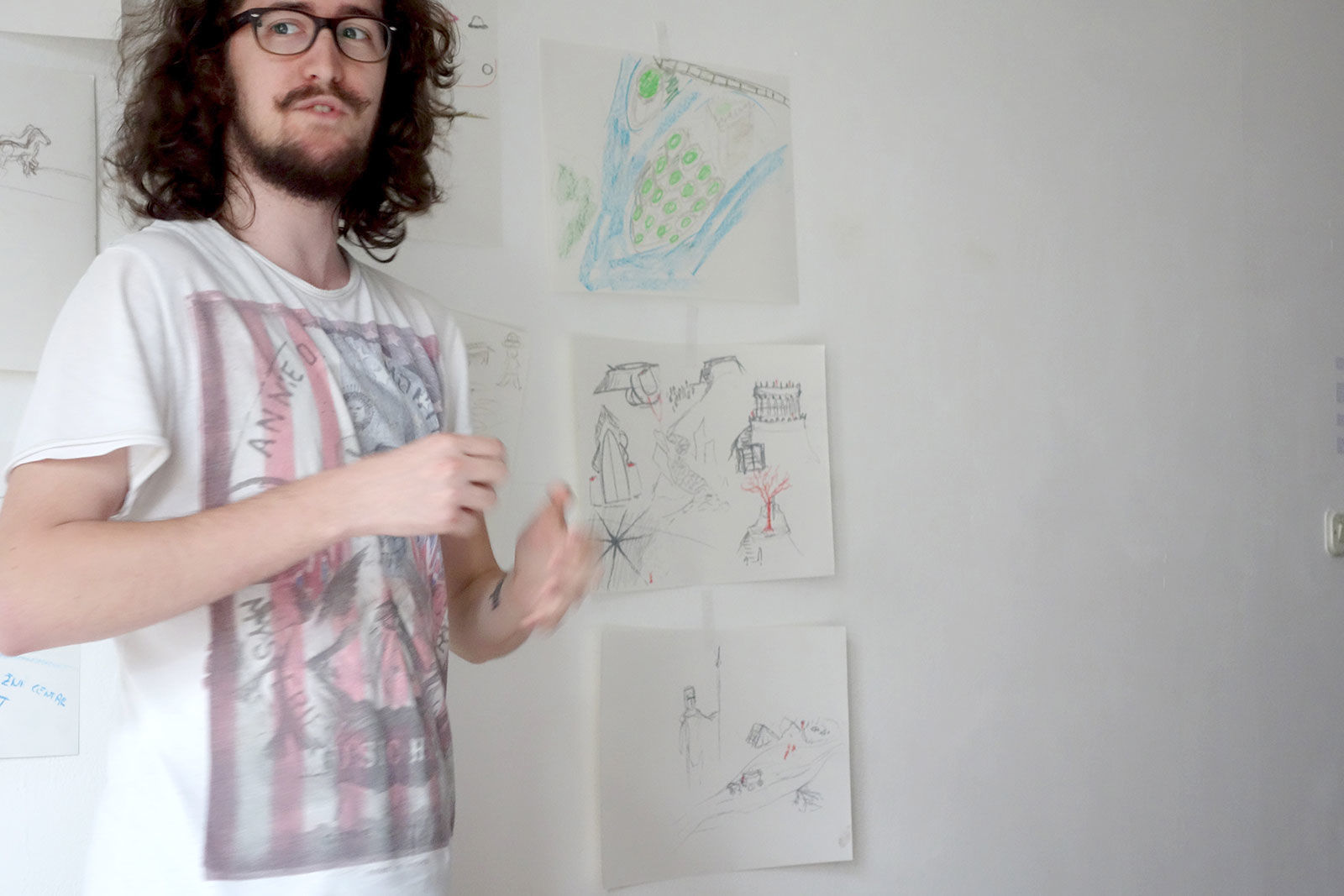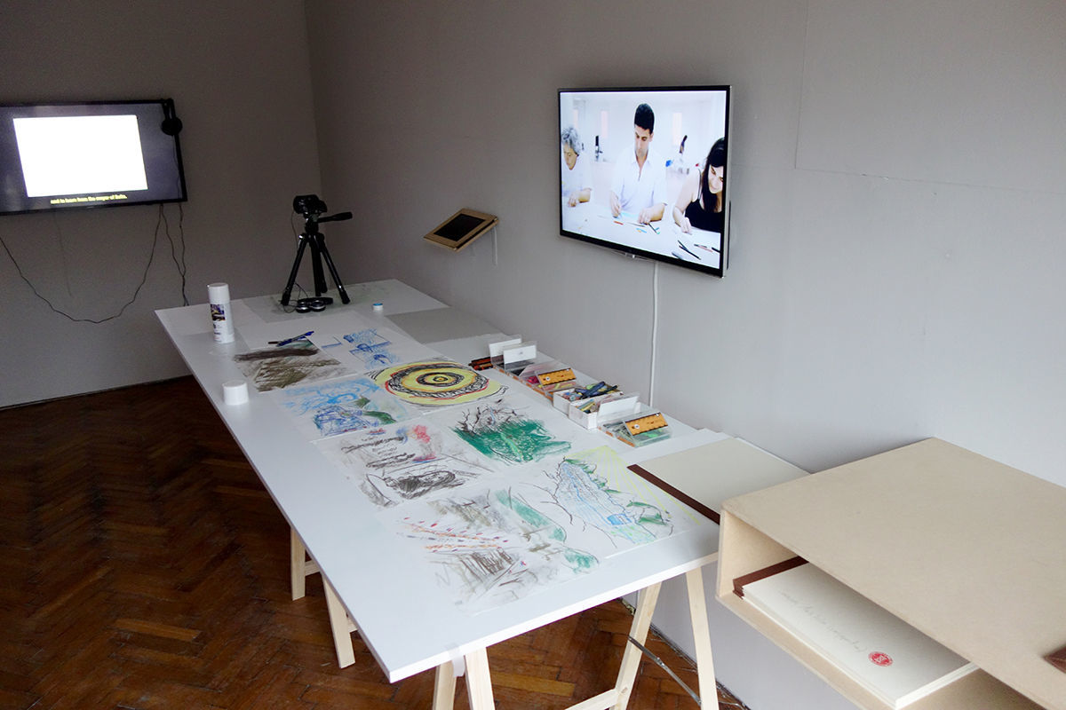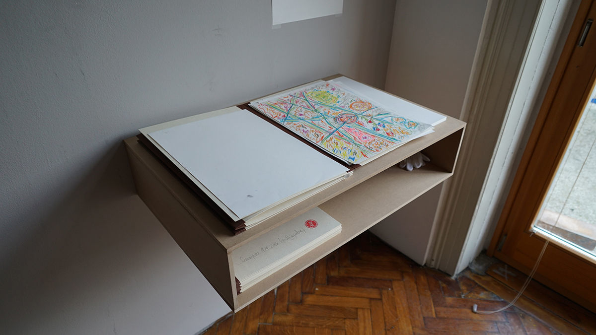Die Sarajevo Time Travel Agency war ein temporäres Reisebüro, in dem die Bürgerinnen und Bürger Sarajevos eine individuelle Zeitreise durch die Stadt Sarajevo buchen konnten. Ranka Katalinski und Andrea Soldo, zwei erfahrene Psychologinnen vor Ort, die wir während unseres ersten Besuchs in Sarajevo kennenlernten und mit denen wir bereits ein erstes Zeitreise Experiment an der Akademie der Künste durchgeführt haben, machten die Reisenden mit unserer Methode* vertraut und leiteten sie an. Die Bilder und Erinnerungen der Zeit-Reisenden flossen in die Ausstellung in Form von Zeichnungen, Audiofiles und Texten ein. Als die Künstler*innen in diesem interdisziplinären Team nahmen wir selbst an den Reisen teil und diskutierten unsere Imaginationen mit den Mitreisenden.