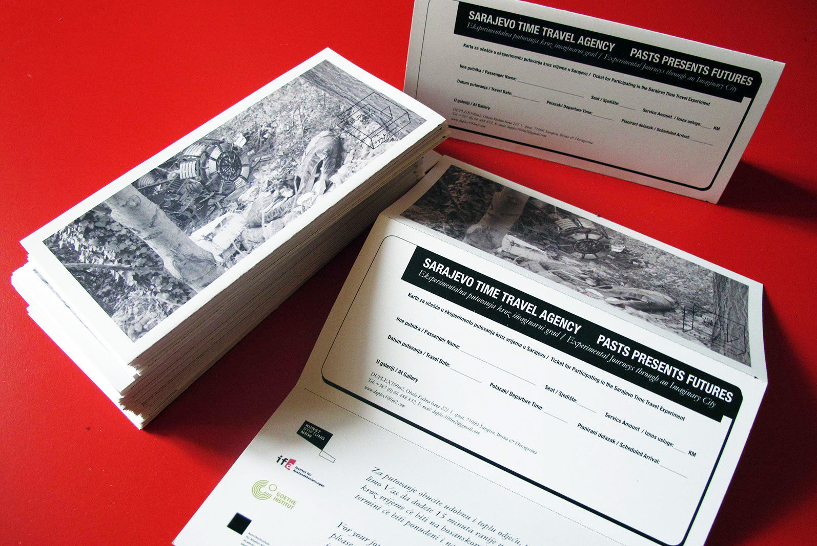 Das Reisebüro und die Ausstellung wurden in Zusammenarbeit mit dem Ausstellungsraum Duplex100m2 und der Kuratorin Darija Simunovic für 4 Wochen eingerichtet. Vom 2. April bis zum 30. April fanden im Salon der Galerie Duplex100m2 zehn Zeitreiseversuche statt an denen insgesamt 50 Personen teilgenommen haben. Wir danken allen Teilnehmerinnen und Teilnehmern für das Vertrauen, das sie in dieses künstlerische Experiment gesetzt haben und dafür, dass sie ihre Imaginationen mit uns geteilt haben.
