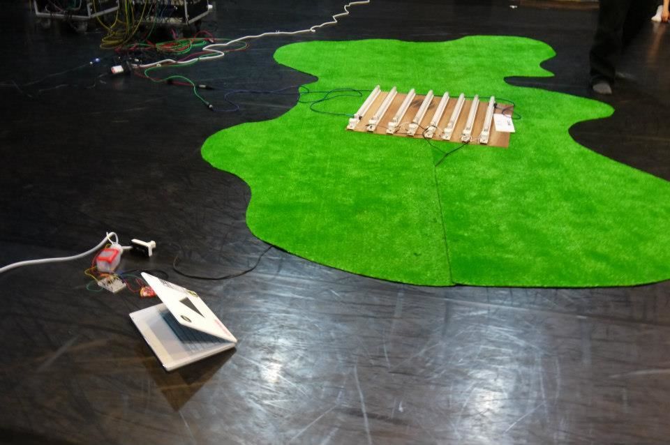 werden via Kontaktmikrofone abgenommen, gemischt und verstärkt im Raum wiedergegeben. Die