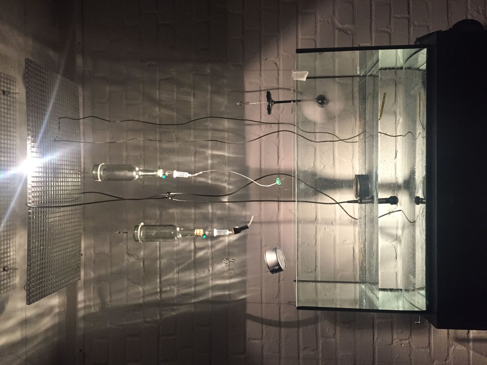 The basic construction of this work consists of an aquarium, a hydrophone, animated objects