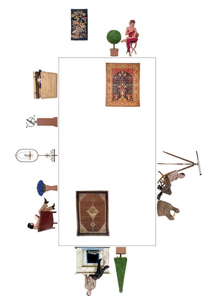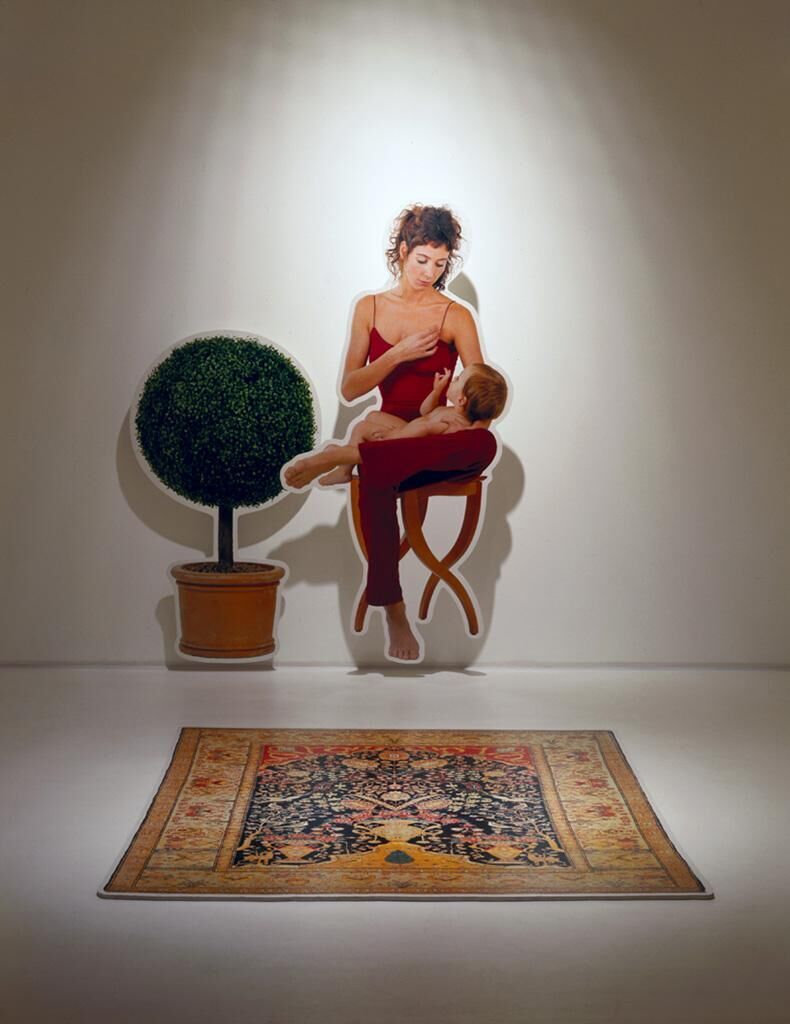 Bei der Arbeit ""Raum der Erinnerung"" handelt es sich um eine fotografische Rauminstallation. Inszenierte Bilder von Freunden sind kombiniert mit bestimmten, der Gartenkunst, der Zirkuswelt, arkadischen Naturvorstellungen, religiösen Mythen und anderen Idealvorstellungen von Welt entnommenen Motiven, deren Darstellungsweise sich z.T. an den stilistischen Prinzipien des Manierismus orientiert. Die Atmosphäre des Raumes ist bunt und fröhlich, alles ist sehr hell und weich ausgeleuchtet, erweist sich allerdings recht schnell als übertrieben künstlich, stilisiert, kitschig,manieriert und überdreht. Thematische Ensembles bildend, reihen sich die einzelnen Fotografien in Lebens- bzw. Originalgröße an und vor den Wänden des Ausstellungsraums aneinander. Sie sind aufgezogen auf weiße Kunststoffplatten, die, mit einem zusätzlichen und leicht abgerundeten weißen Rand, die Umrisslinien der Protagonisten und Gegenstände nachformen. Wie durch einen überdimensionalen Mal- und Bastelbogen entsteht eine phantasievoll und spielerisch absurde Welt. Der Besucher des Raumes bewegt sich in einer stummen, hyperrealistisch detaillierten aber künstlichen Szenerie, einer trügerischen Periphrase der mich umgebenden Lebenswelt.