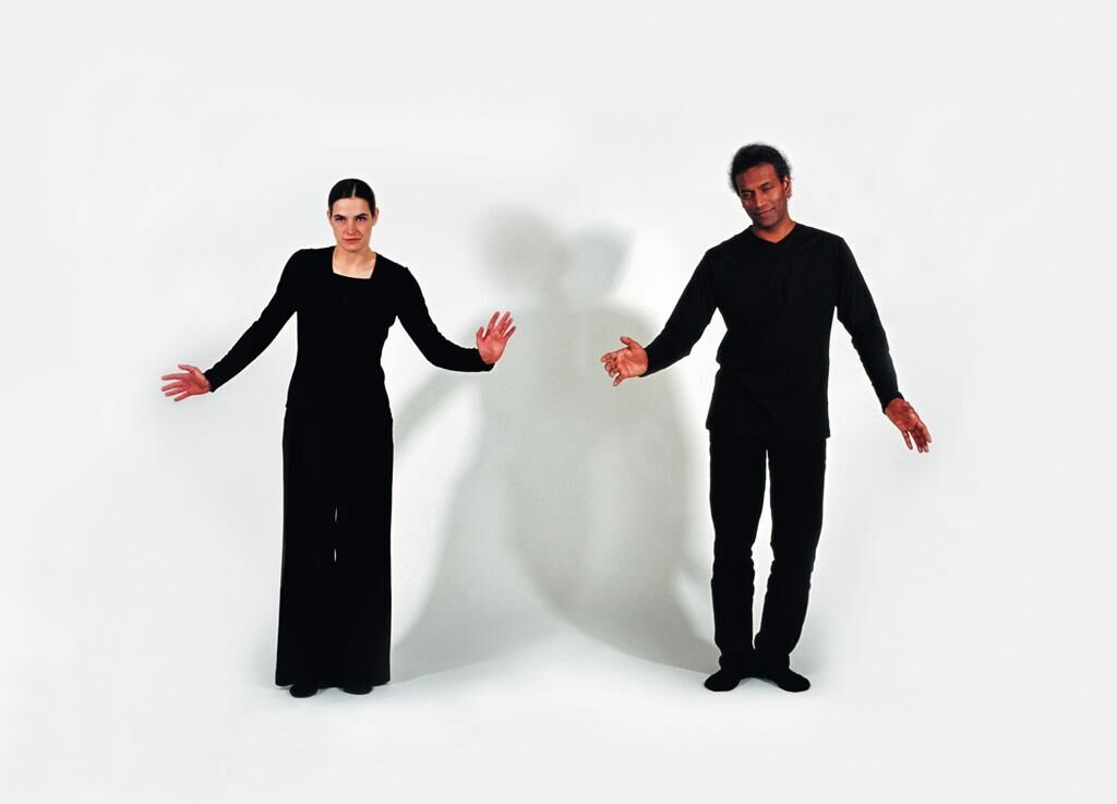 Ein Mann und eine Frau wurden fotografiert und ihre Abbildungen transformiert. Das Ergebnis sind zeitbasierte Sequenzen. Die Subjekte auf den Bildern werden in Übergröße auf zwei Leinwände projiziert. Ihre Hände und Gesichter sind in Bewegung - langsam und mehrdeutig verändern sie sich, während sie den Bereich des „Dazwischens“ durchlaufen. Die Gesten haben keine Bedeutung. Vielmehr sind sie Sinnbild für den Prozeß des Werdens und den Fluss kontinuierlicher Bewegung. Die Gestik formt die Charaktere und eine Art Tanz entsteht, ein Tanz der Gesten. Melita Dahls Installationsarbeit schöpft in erster Linie aus der digitalen Technologie des Morphens. Indem sie Zeit wieder in das Bild zurückführt, definiert sie ihre künstlerische Arbeit mit dem fotografischen Medium neu. Dahl erkundet diesen Prozeß in ihren Untersuchungen von Mimik und Gestik. Durch ihre Sondierung des computergenerierten Moments des Dazwischens werden subtile ontologische Phänomene sichtbar, und der digitale Prozeß enthüllt den Menschen als Schöpfer seiner eigenen Form.