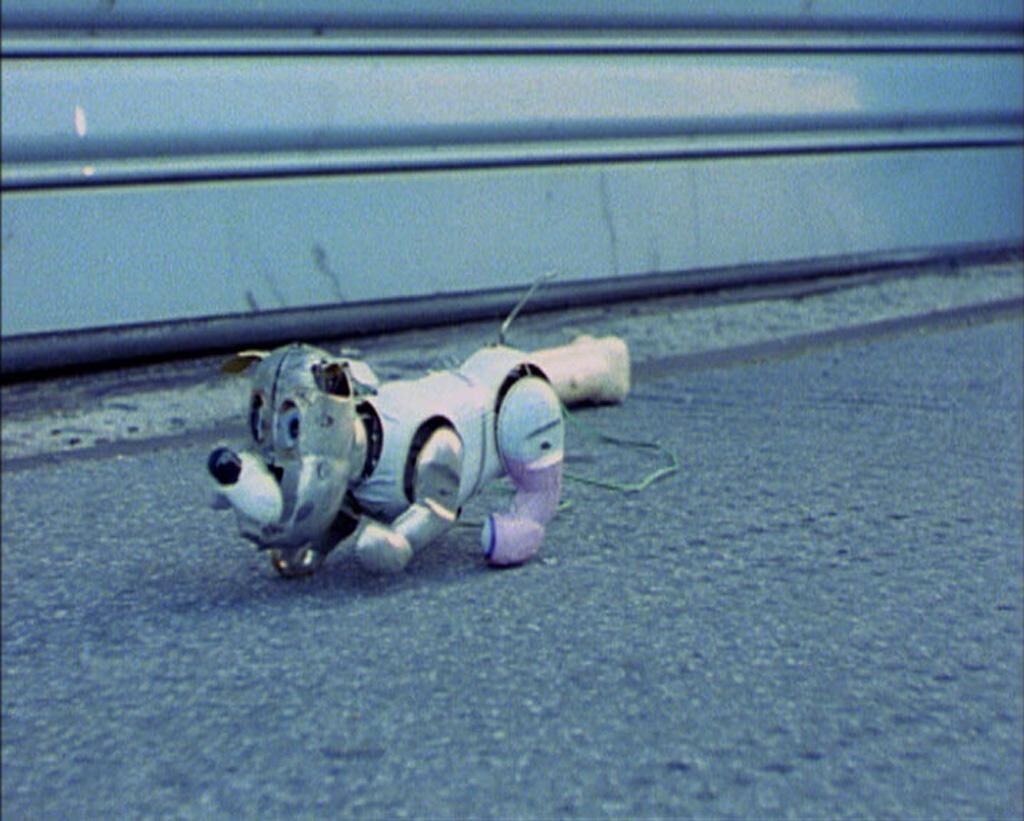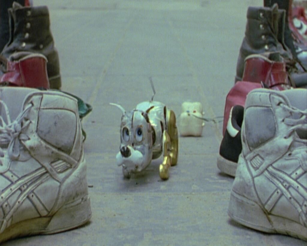Ein kleiner, prähistorischer Spielzeughund flüchtet von einem Schrottplatz, während Schubkarren eine Choreografie tanzen. Ein Robocop-Hund nimmt die Verfolgung auf. Auf der Flucht erleben die beiden Hunde kleine Abenteuer. Der Flüchtige lümmelt sich im Park, schließt sich Schuhen an, die mit ihm anfangen zu tanzen. Der Verfolger entkommt nur knapp einem Unfall, Schuhe weisen ihm den rechten Weg, um die Verfolgung wieder aufzunehmen ...