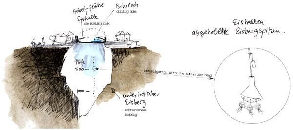 Die Sonde ist ein exploratives Präzisionsgerät zur Erforschung subterraner Eisberge unter Eishallen. Dank “Side-Scan View” gewährt sie eindrucksvolle horizontale Einblicke in Bodenschichten, Eishöhlen und den dort vorkommenden subglazialen Lebensformen bis zu einem Radius von 1m ab Sondenkopf. Mittels dem Einsatz von feinfühliger Sensorik in Kombination mit ausgefeilter Hard- und Software erlaubt das Ortungssystem eine handliche subterrane Eisbergforschung.