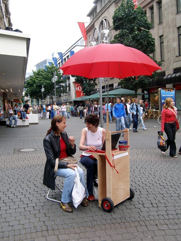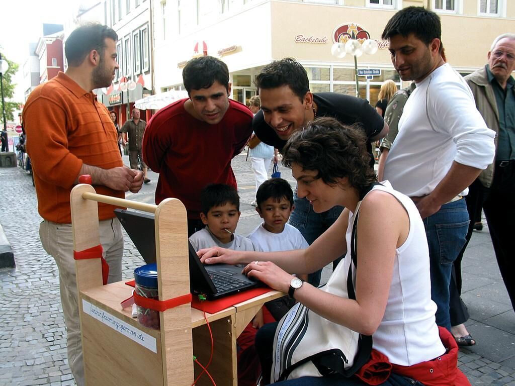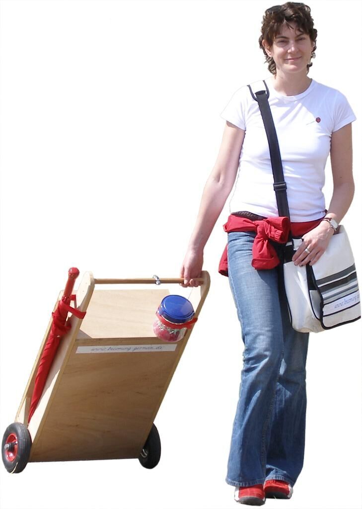 Mit der Online-Datenbank ""www.becoming-german.de"" untersucht die neuseeländische Künstlerin Joanne Moar, wie eine typisch deutsche Kindheit aussehen könnte sowie die Möglichkeit, sich eine solche anzueignen. Zwei Nutzungen der Datenbank sind möglich: Entweder können eigene Erinnerungen aus der Kindheit in Deutschland der Datenbank hinzugefügt werden (Kindheit spenden) oder es kann, anhand der schon vorhandenen Erinnerungen, eine neue deutsche Kindheit zusammengestellt werden (Kindheit empfangen). Um die benötigten Kindheitserinnerungen zu sammeln, die zur Feststellung eines allgemeinen – aber auch subjektiven – Erinnerungsguts beitragen, geht die Künstlerin mit dem eigens dafür angefertigten mobilen Info-Modul quer durch Deutschland auf Wanderschaft. Abends wird das Projekt in Form der ""becoming german""-Info-Stelle in lokalen Kunsteinrichtungen (z.B. Kunstvereine, Projekt- und Ausstellungsräume, etc.) präsentiert. Tagsüber werden öffentliche Schauplätze der jeweiligen Ortschaft aufgesucht (Einkaufsstraßen, Bahnhöfe, Parks, etc.), wobei Personen, die in Deutschland aufgewachsen sind, aufgefordert werden, Fragen zu spezifischen Kindheitserinnerungen zu beantworten.