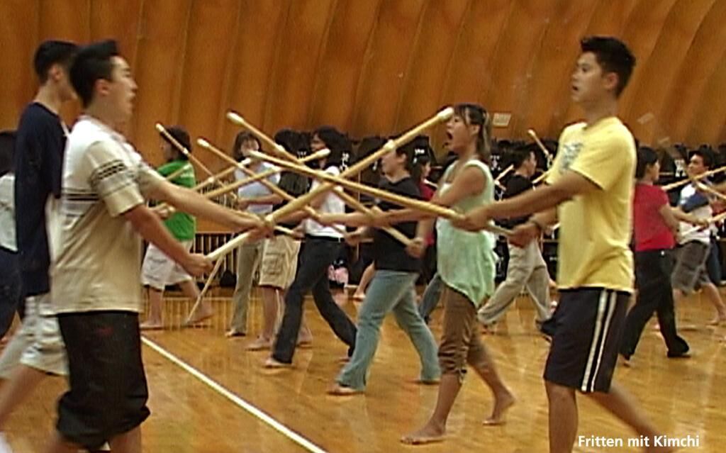 In jedem Sommer pilgern tausende „Ise-Kyopos = „im-Ausland-lebende-Koreaner-der-2.Generation“ aus allen Teilen der Welt unmittelbar nach dem Schulabschluss nach Südkorea, um dort in sog. Summer Schools die Sprache ihrer Eltern zu erlernen. Fritten mit Kimchi dokumentiert die Reise junger Deutsch-Koreaner in die Heimat ihrer Eltern. Durch ihre Beobachtungen entdeckt der Zuschauer einen kleinen Teil Südkoreas – dabei lernt er mehr über die Menschen, die Kultur und Traditionen kennen, dabei durchleben die Protagonisten die kulturellen Unterschiede zwischen Deutschland und Korea. Häufig werden sie mit dem Versuch, sich einer nationalen und kulturellen Identität bewusst zu werden, allein gelassen - drüben wie hier. In unserer Welt, die sich immer näher zu kommen scheint, gewinnen Traditionen und kulturelle Identifikation wieder mehr an Aufmerksamkeit, Fritten mit Kimchi zeigt ein anderes Bewusstsein für Tradition und Kultur.