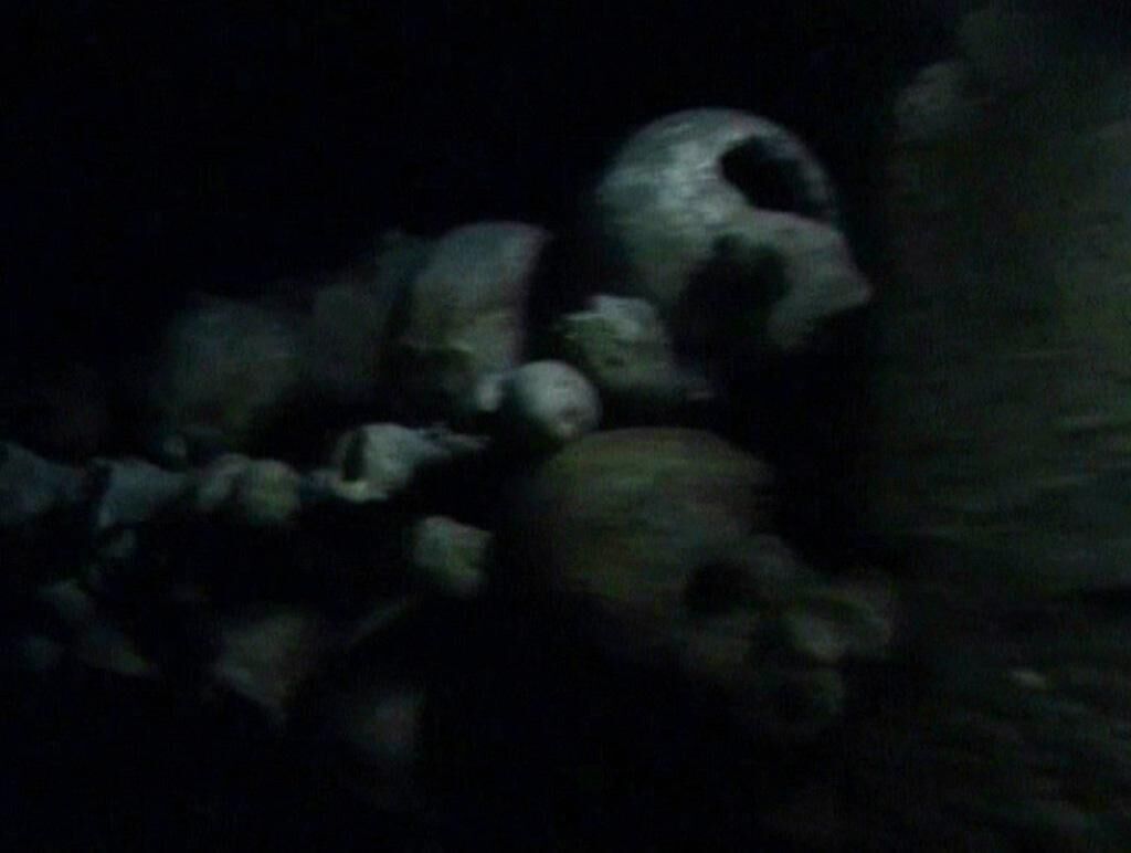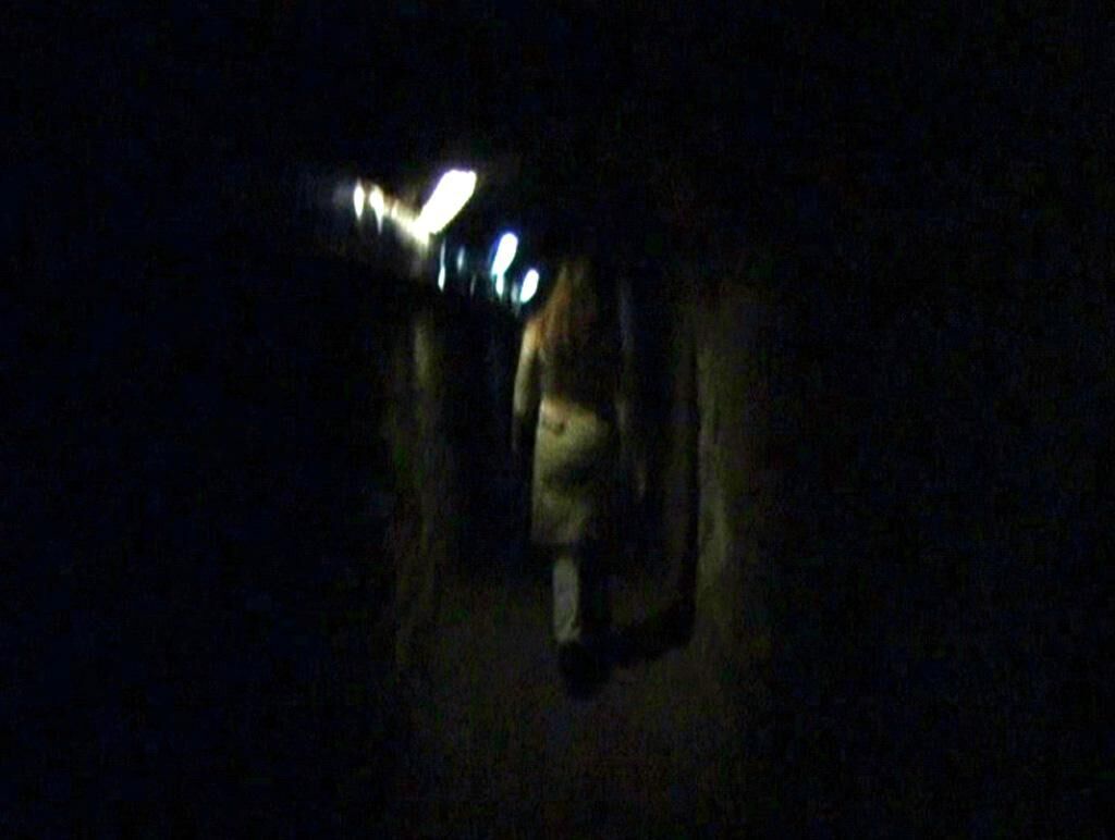 Ein geschlossener, hoher, dunkler Raum. Auf dem Boden liegt eine begehbare, 2,60 m x 2 m große Spiegelfläche. Das Videobild wird senkrecht nach oben auf die Projektionsleinwand geworfen, die waagerecht unter der Decke hängt. Der Besucher muss die Spiegelfläche betreten, um sich selbst in und zwischen den Bildern zu erfahren. Der Betrachter sieht schwankende Bilder, einen Gang durch die Dunkelheit der Katakomben von Paris. Ab und zu erkennt man sich bewegende Lichter, Lampen oder Knochen. Dazwischen sind immer wieder völlig schwarze Sequenzen. Nur am Ende gibt es eine verschwommene, helle Sequenz. Der Gesang ist dominant, dringt laut und choral aus allen Ecken.