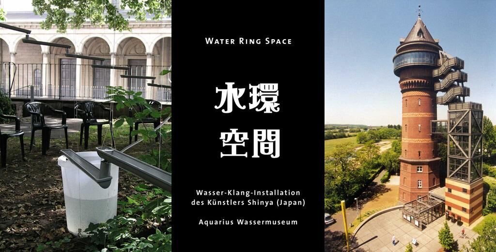 ""water-ring-space"" des japanischen Künstlers und Gestalters Shinya wird durch das Symbol des Kreislaufes, der harmonischen Bewegung der Naturphänomene, inspiriert. Die Wasserinstallation durchzieht die Ausstellungsräume des Museums, umgibt den Wasserturm des Aquarius und endet in einem meditativen, zur Entspannung einladenden Raum. Zur Ausstellung: ""water-ring-space"" eröffnete den Ausstellungszyklus ""panta rhei II"" mit weiteren Installationen von Meike Fehre, Laurence Jégou, Mohamed Fezazi, Zhe Li, Benjamin Wild, Helge Jansen, Vesko Gösel, Ludwig Zeller. Es war ein gemeinsames Projekt der FG Mediengestaltung, Kunsthochschule für Medien Köln und der RWW Rheinisch-Westfälische Wasserwerksgesellschaft.
