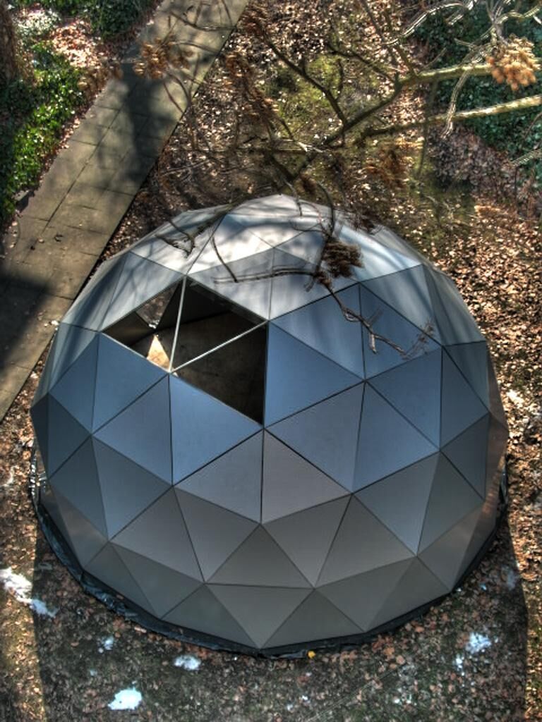 Ähnlich wie bei einer Sternwarte fokussiert sich der Blick aus einer geodätischen Kuppel heraus auf ein Sternbild aus sieben programmierten LEDs. Die LEDs sind in bis zu 20 m Höhe an jeweils einem schwarzen Heliumballon befestigt, sodass nur Lichtpunkte am Himmel zu erkennen sind. Je nach Wetter und Umgebungslicht verändert sich das ""Sternbild"". Bei Windstille in sternklarer Nacht sieht man leicht zitternde Lichtpunkte zwischen den realen Sternen, bei Wind tanzen die Lichtpunkte vor dem Fenster. Die Kuppel fokussiert den Blick auf einen Ausschnitt des Himmels. Die Umgebung wird ausgeblendet, die spezielle Geräuschkulisse durch die geödätische Bauweise verstärkt den Eindruck des Ortes. Bauweise und Material Die geodätische Kuppel mit 6m Durchmesser wird aus einzelnen Stahlelementen zusammengesetzt. Die Wandung der Kuppel bilden dreieckige Dibond-Platten, die mit einem speziellen Klettverschluss angebracht werden, sodass Öffnungen zu allen Seiten möglich sind. Die Kuppel ist mobil und kann zügigl auf- und abgebaut werden. Die sieben LED-Sterne wurden aus SMD-LEDs gefertigt und mit Mikroprozessoren versehen, welche die Stromzufuhr regeln, die Szintillation der Sterne imitieren und die Helligkeit steuern. Jeweils eine LED wird mit einem schwarzen Heliumballon in die Höhe gebracht. Die Bewegungen des Sternbildes sind für den Standpunkt vor dem Fenster in der Kuppel optimiert.