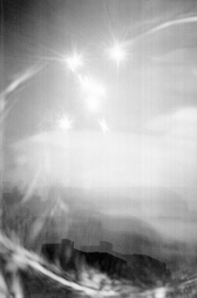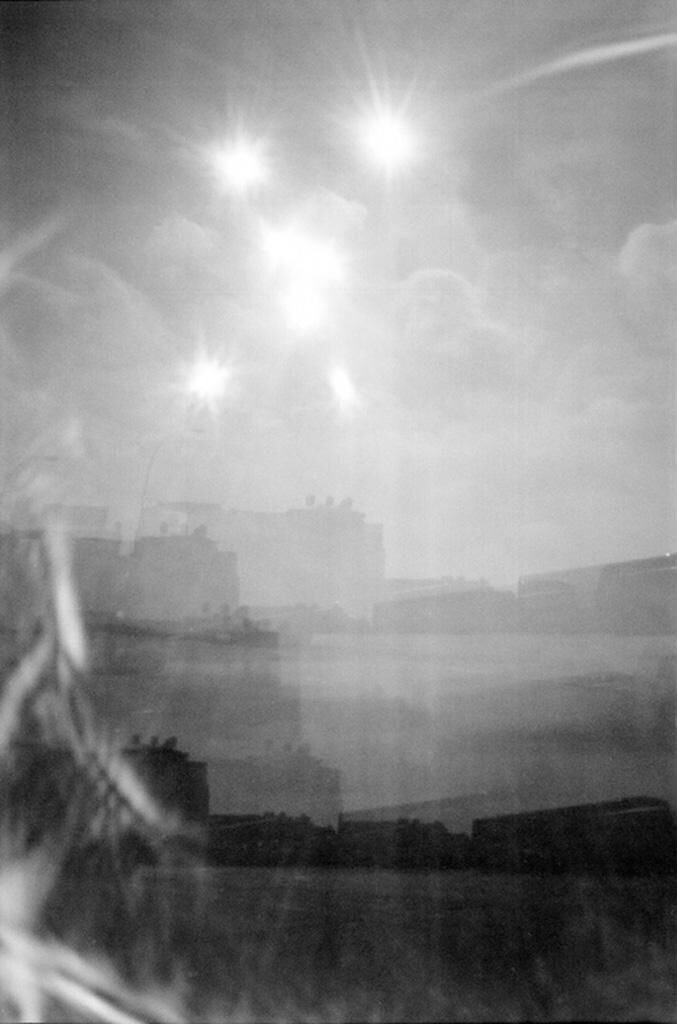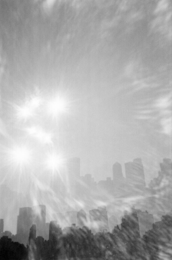 An Stelle eines ""Pinholes"" besitzt diese Kamera eine Anordnung von Löchern als Objektiv, die in Ihrer Position zueinander das Sternbild des Orion widerspiegeln. Die Sonne wurde zur Mittagszeit am Stadtrand und im Zentrum (Central Park) von New York fotografiert.