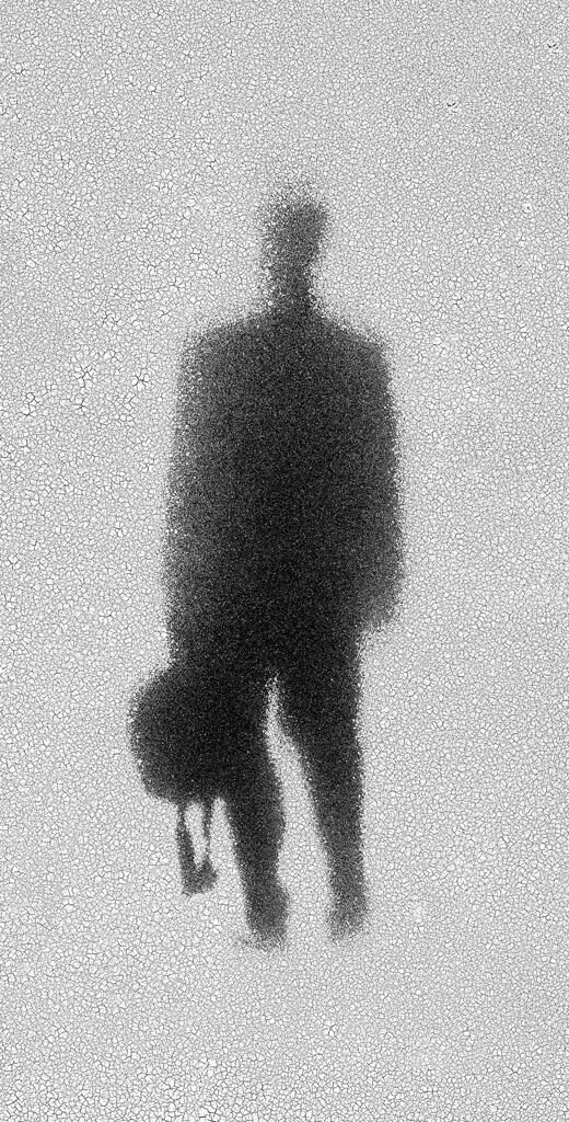 Es handelt sich hierbei um eine noch in der Entstehung befindende Rauminstallation oder genereller gesprochen einer experimentellen Technik. Diese basiert auf Experimenten mit Tusche und Gelatine, innerhalb denen ich interessante und komplexe Rissentstehungen beobachten konnte. Im Laufe einiger Monate sind daraus die Serie ""Okkupation"" und ""Die Navigatoren"" entstanden. Die Navigatoren zeigen auf ihren bedruckten Folien strebsam gehende Personen, die man anhand ihrer Kleidung und ihres Handgepäcks als typische Geschäftsmänner und -frauen erkennen kann. Jede Folie wird von einer Person eingenommen und befindet sich somit hängend im Raum. Bei näherer Betrachtung erkennt man, dass die gesamte Folie mit einem feinen Netz aus Rissen überzogen ist, das sich zu den dargestellten Personen hin verdichtet, bzw. diese darstellt.