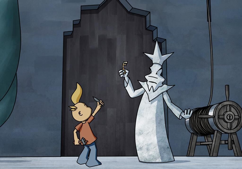 Marc ist verzweifelt. Wie kann er den drückenden Steinmauern des Internats entfliehen? Die Statue Arcos steht zwischen ihm und der Freiheit, denn sie hält den Schlüssel zum Burgtor in der Hand. Mit Hammer und Meißel bewaffnet ist es ein Leichtes, den Schlüssel zu entwenden. Doch mit einem hat Marc nicht gerechnet: Die Turmuhr schlägt zwölf und Arcos erwacht…