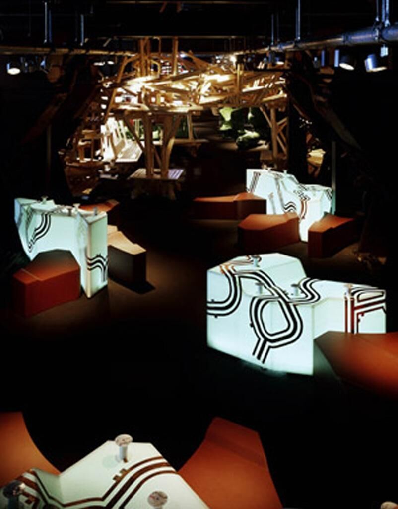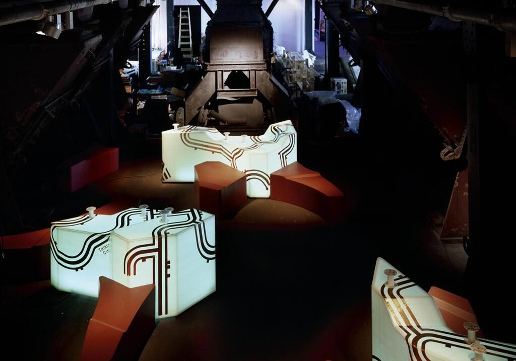 In Zusammenarbeit mit Francesca Ferguson und urban drift productions Ltd. entstand diese Gestaltung für die Audiolounge der Ausstellung talking cities, die im Herbst 2006 in der Zeche Zollverein, Essen stattfand. Es sollte ein System entwickelt werden, das als Interface für Talking Cities Radio dient. Ausgehend von Kopfhörer-Hörstationen und der Prämisse, denselbigen so fern wie möglich zu bleiben, wurde eine Vielzahl von Entwürfen entwickelt. Wir haben uns am Thema, der sprechenden Stadt, orientiert und versucht einen Ansatz zu finden, der auch außerhalb des Urbanismus/Architekturdiskurses funktioniert. Ergebnis war ein System, das das Thema des städtischen Versorgungsnetzes aufgreift, und dem Besucher einen Zugang jenseits des Frontalunterrichts ermöglicht. Offene Kupferleitungen, die bei Kontakt mit den entsprechenden Miniaturempfängern das Audiosignal hörbar machen. Da die Zeche Zollverein als Weltkulturerbe unter Denkmalschutz steht und so keine Veränderung an der Bausubstanz vorgenommen werden darf, wurden für die modularen Kupferspuren Trägerobjekte entwickelt. Diese Objekte greifen die Form der Audiolounge auf und erweitern sie.