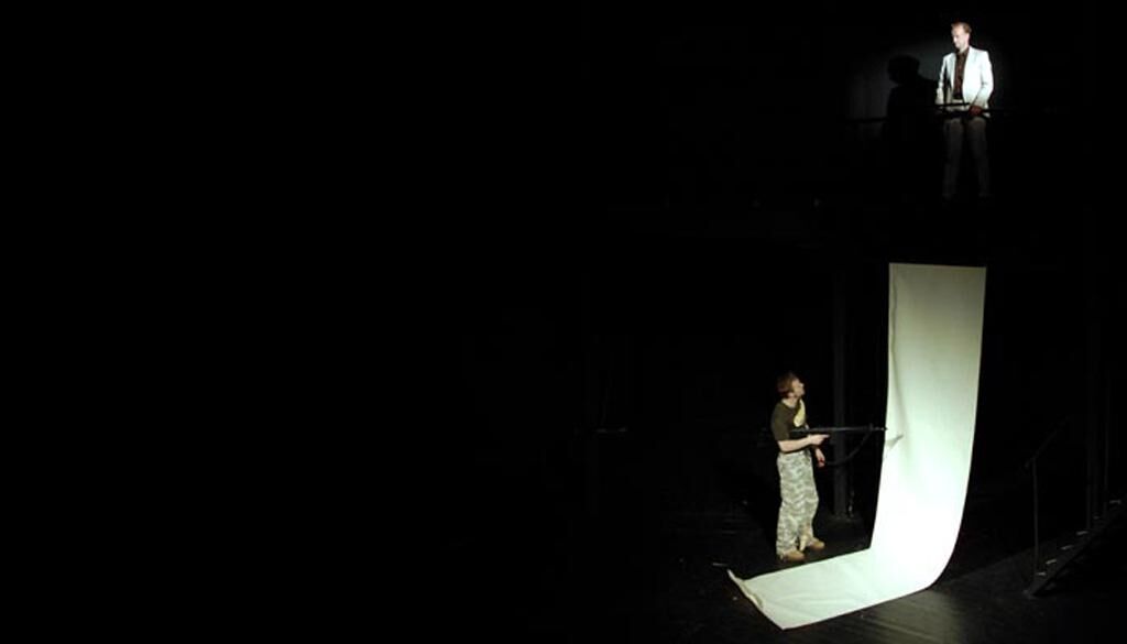 Drama mit Musik von Henry Purcell. Text von John Dryden (Uraufführung 1691). Oper und Theater als Kristallisationspunkt der darstellenden und medialen Kunst. In Nora Bauers Inszenierung des „King Arthur“ in Kooperation mit dem Bereich Video / interaktive Medien der KHM treffen beide Künste aufeinander. Die Szenografie gibt sich betont reduziert und ästhetisch konsequent: schwarz-weiße Projektionen legen sich als Zitat über eine schwarze Bühne unter Verzicht einer requisitenbetonten Ausstattung. Es sind Symbole für Krieg und Wahrheitsverlust, aber auch für Ironie, menschliche Gefühle und Befindlichkeiten. Keine historisierende Anlehnung, sondern Anspielungen auf stets wiederkehrende Konflikte und Sehnsüchte.