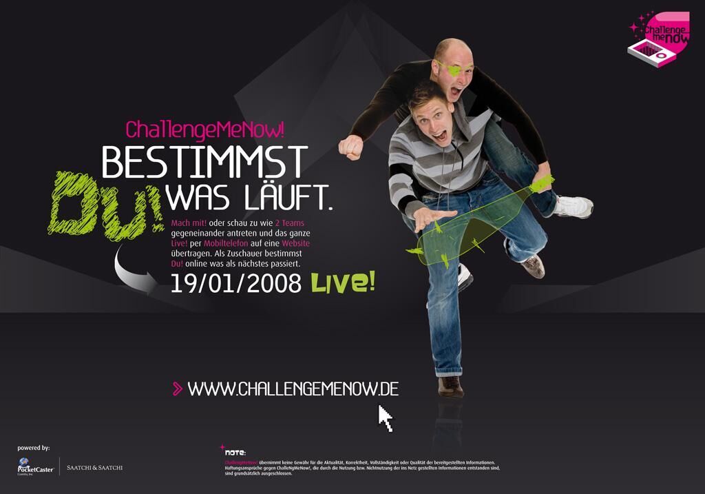 Wie kann man schon heute mobiles, interaktives Fernsehen möglich machen? Ganz einfach! Über die Inszenierung der ersten „Mobile Liveshow“, bei der zwei 2er-Teams mit ihren Kamerahandys live auf eine Website streamen. Der Clou: Die Zuschauer bestimmen über ein Voting auf der Website den Inhalt und Verlauf der Show. Begleitet werden sie dabei von zwei Online-Moderatoren.