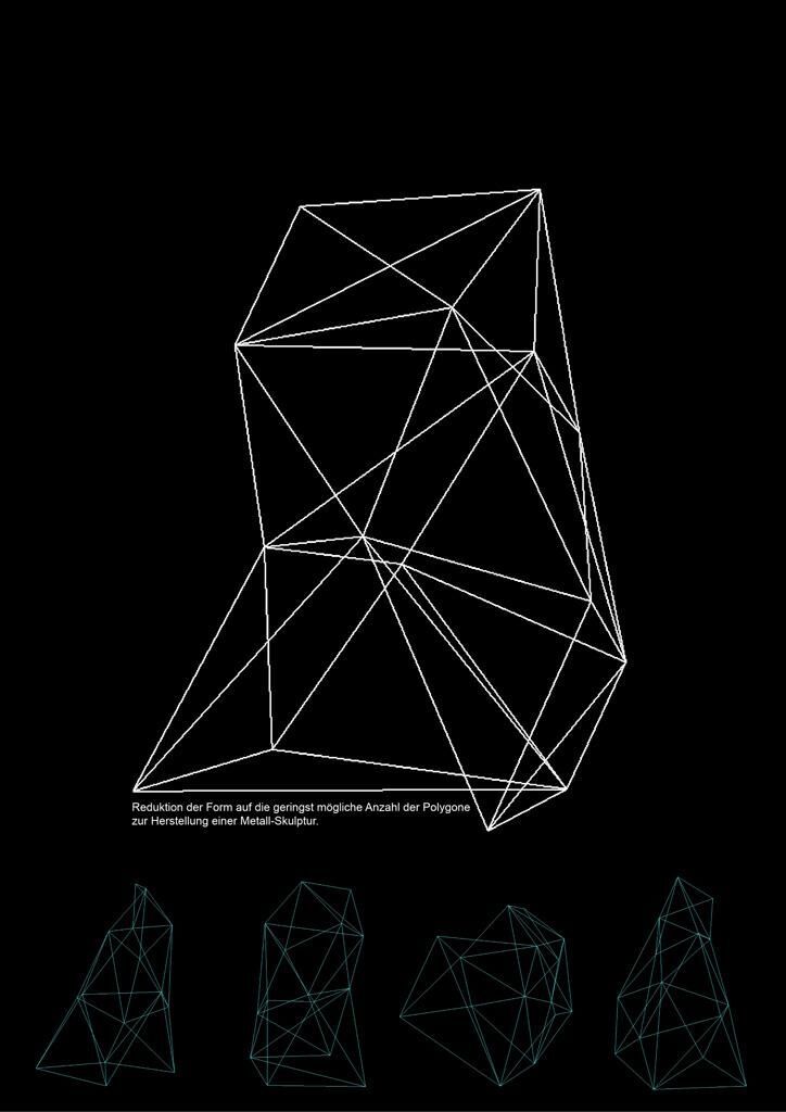 Digitalmalereien – Mit einem Computermalprogramm erzeugte Imitationen von variablen Pinselstrichen, die je nach Einstellung auf imaginäre Strukturen eines Grundes (z.B. Papier) reagieren. So lassen sich Eigenschaften von Farbverläufen, Übermalungen oder Mischverhältnissen nachahmen, die mittels ihrer programmierten Berechnung – quasi eines „Ductus-Algorhythmus“ – das Surrogat „echter“ Malerei liefern. Ein Surrogat, das parallel zum virtuellen Internetspiel „Second Life“ auch als „Second Painting“ verstanden werden könnte: Hier sind verschiedenste Varianten (mehrere Malgründe gleichzeitig), Korrekturen und Neuanfänge möglich, die keine sicht- und fühlbaren Spuren hinterlassen. Gedruckt auf Papier sind glatte Oberflächen zu sehen, die sich eben durch die Abwesenheit realer Farbe und Struktur auszeichnen. Ein Gedächtnis an vorangegangene Arbeitsweisen und Prozesse existiert nicht. Einzelne Striche sind damit nie Überbleibsel oder Rückstände, sondern allenfalls als bewusst gesetzte Irritationen. Polygone Primitive – Eine Skulptur wird über einen 3D-Scanner virtualisiert. Untersucht werden die möglichen Aggregatzustände einer Form im virtuellen Raum. Der Raum, der die Skulptur umgibt, hinterlässt ebenso seine Spuren wie der Transformationsprozess an sich. Ikonische Differenz der Bildhaftigkeit einer Skulptur und der Objekthaftigkeit des Materials bestimmen den Arbeitsprozess. Die so generierten Daten sollen wieder in Wechselwirkung mit dem realen Raum treten. Experimentiert wird mit 3D-Druck-Verfahren und Auflösung der dreidimensionalen Form in technische Schnittmuster zur Herstellung von Metallskulpturen.